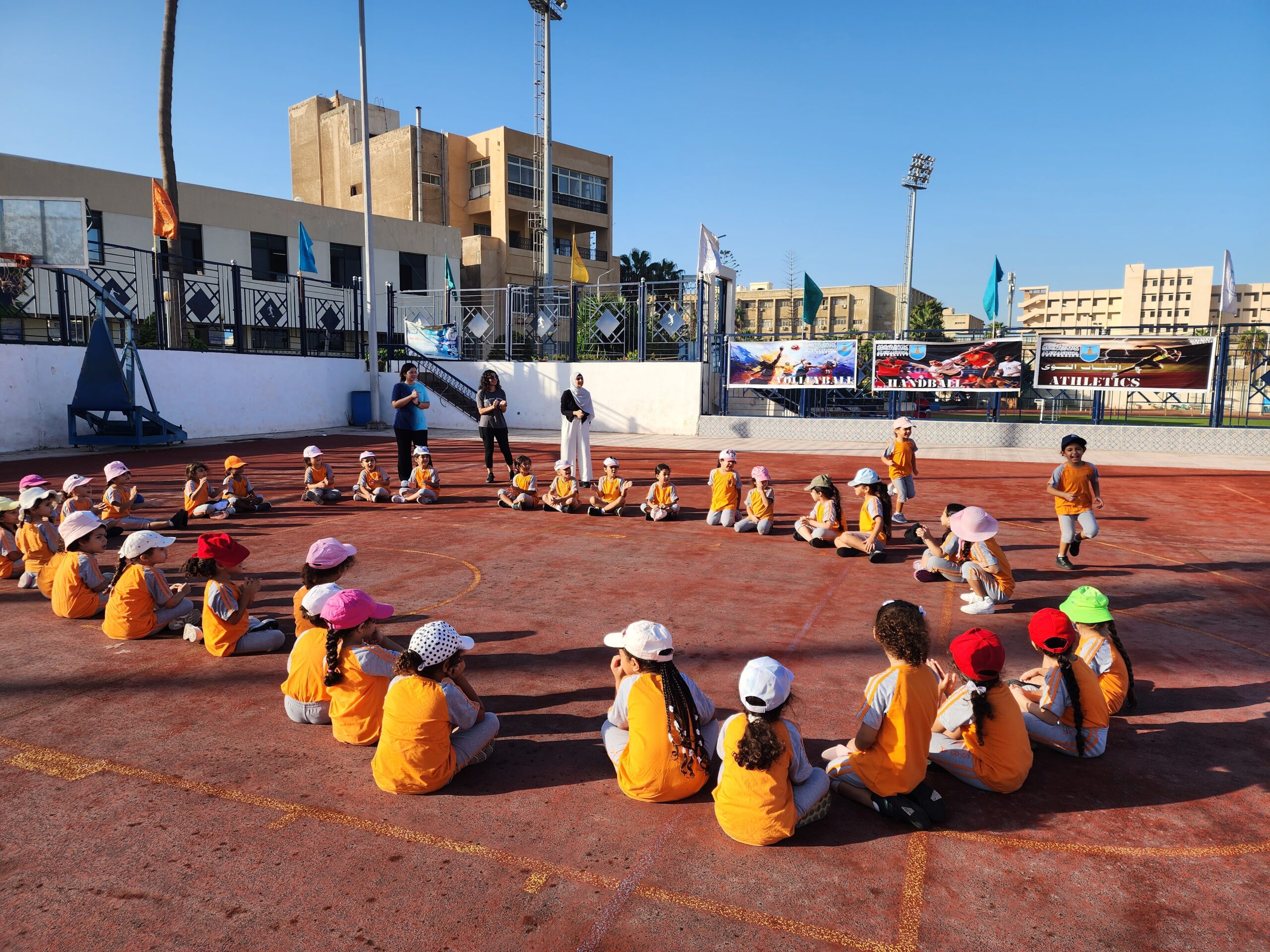 Nach dem Frühstück fuhren drei Busse mit 123 Kindern und allen Erzieherinnen zum Sportplatz. Nach der Eröffnung des Sportfestes wurde zur Musik des „Körperteil Blues“ und des bekannten Fliegerliedes getanzt und sich ordentlich erwärmt.