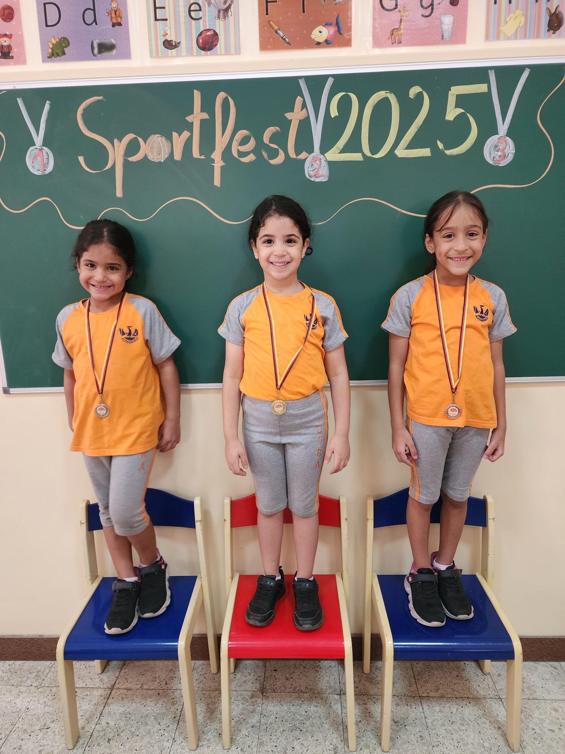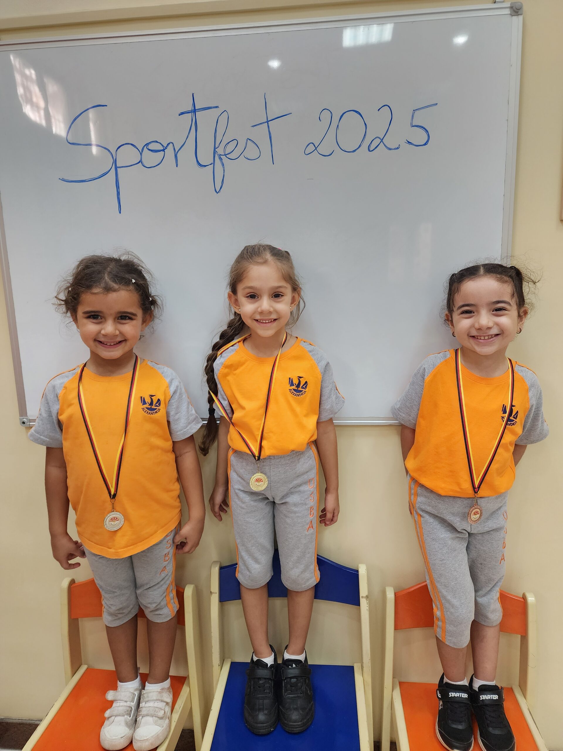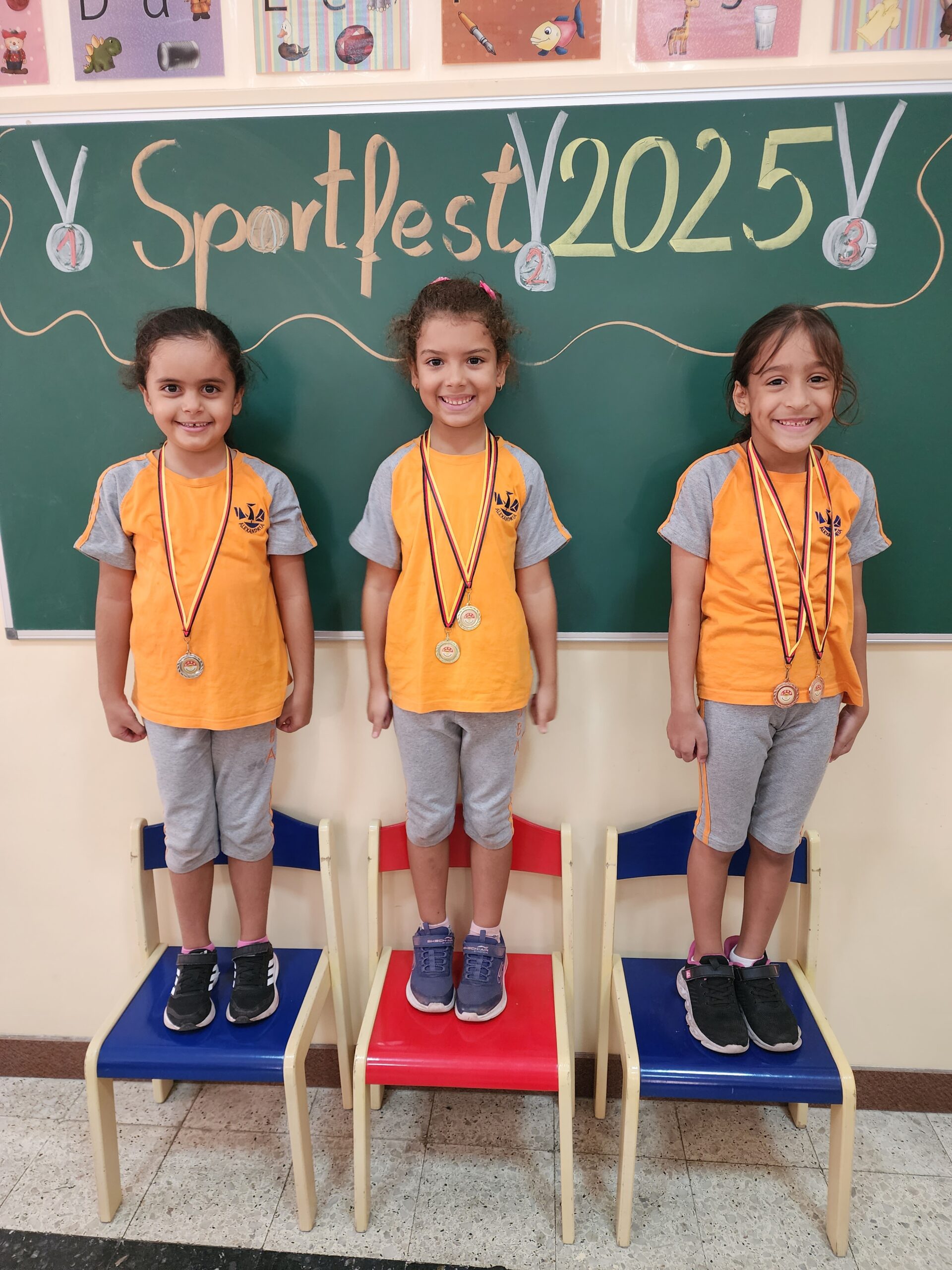Die drei Stunden vergingen wie im Fluge und wir mussten wieder zurückfahren. Körperlich ausgepowert und glücklich kamen alle an der Schule an und freuten sich auf die Siegerehrung. Diesmal gab es einen wahren „Medaillenregen“, denn es wurden in jeder Gruppe die besten drei Schülerinnen im Laufen, Springen und Werfen mit einer Gold -, Silber und einer Bronzemedaille durch Herrn Eszlinger und Tariq geehrt. Darüber haben sich die Schülerinnen und die Erzieherinnen der Gruppe sehr gefreut. Und diejenigen, die diesmal keine Medaille gewonnen hatten, erhielten noch einen kleinen Preis von den Erzieherinnen überreicht.