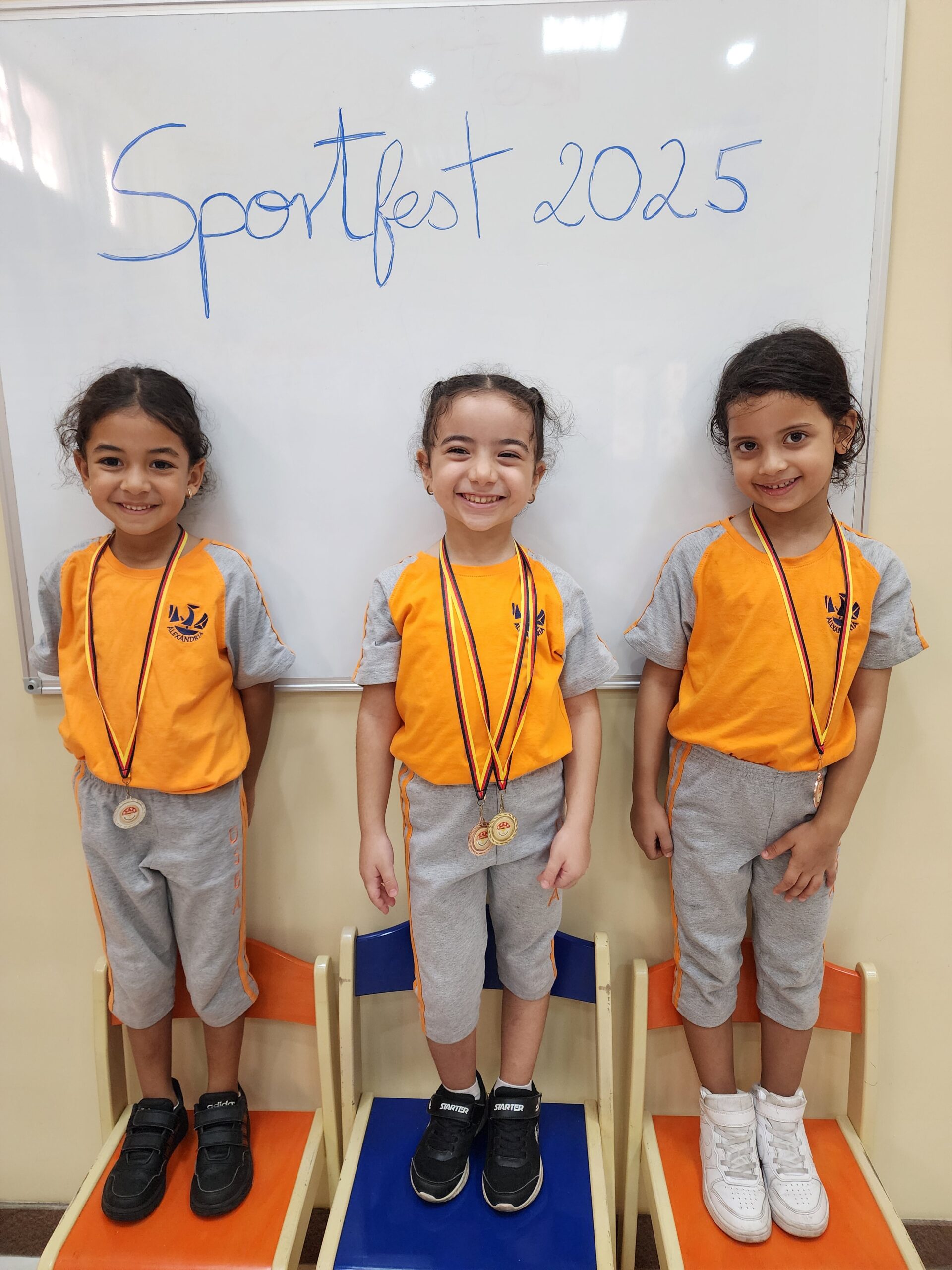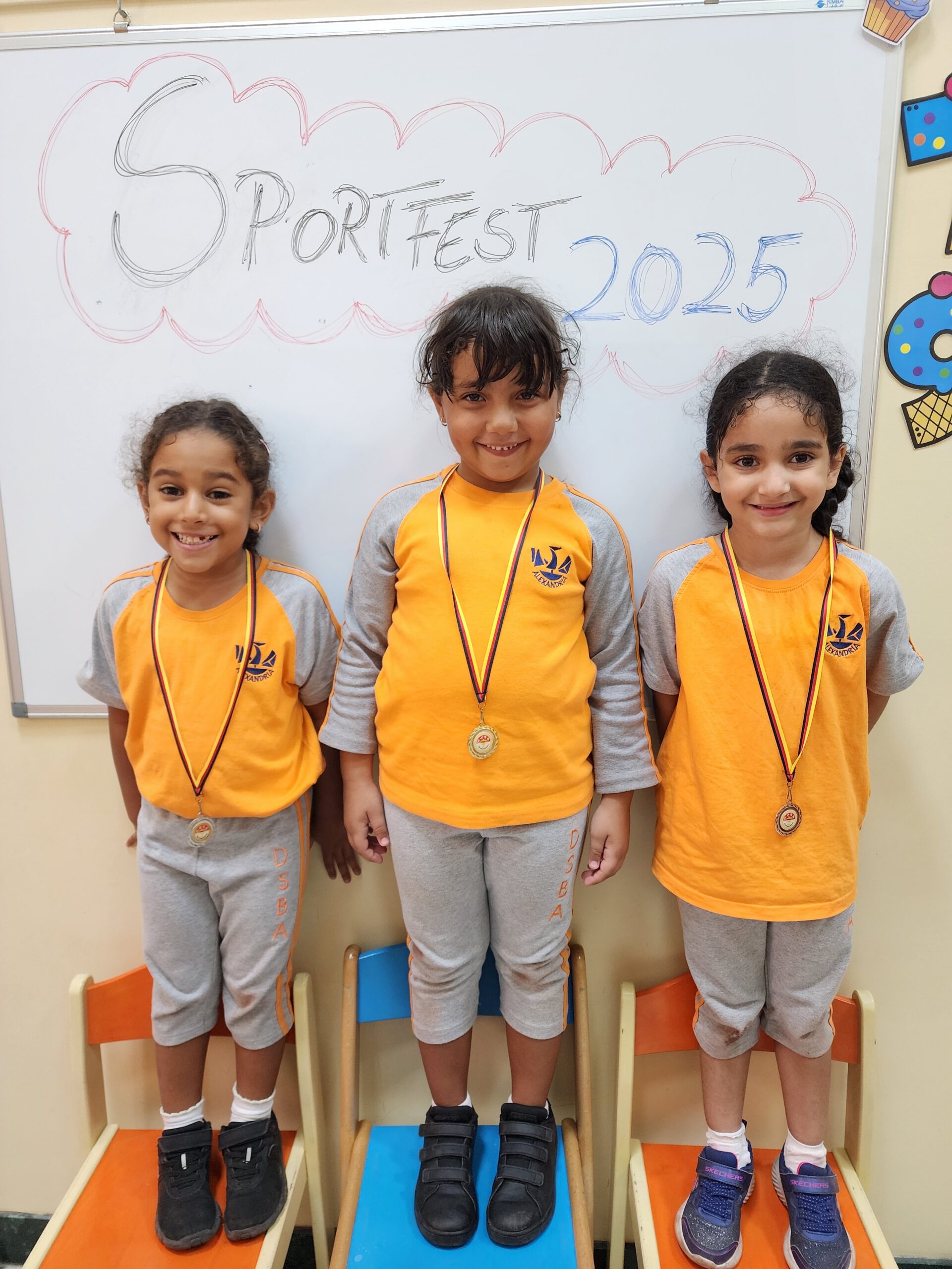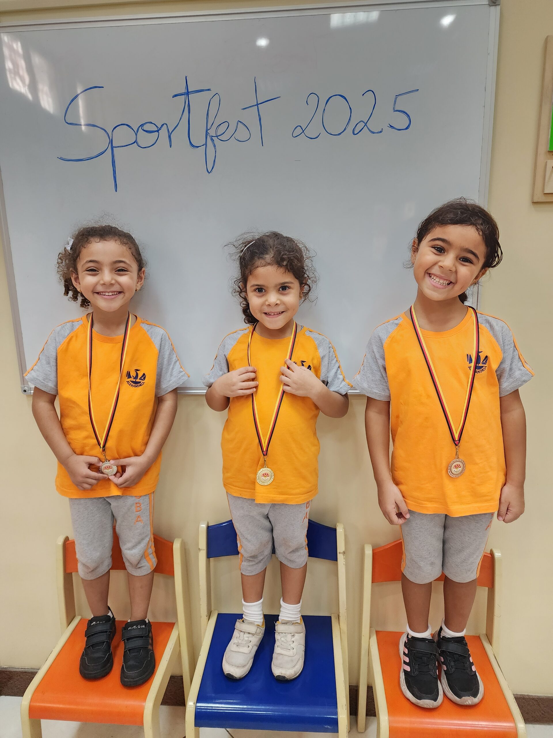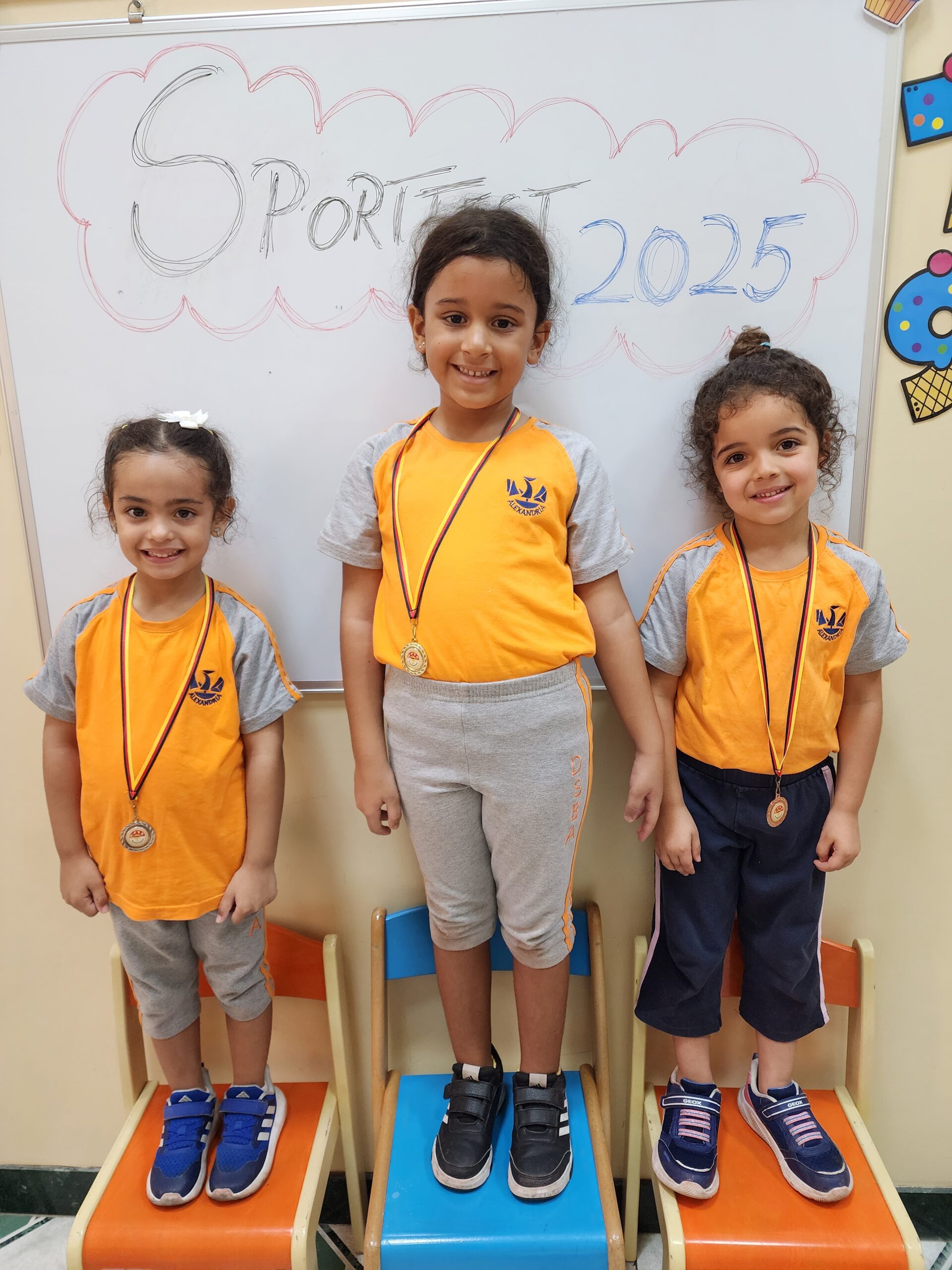 Die drei Stunden vergingen wie im Fluge und wir mussten wieder zurückfahren. Körperlich ausgepowert und glücklich kamen alle an der Schule an und freuten sich auf die Siegerehrung. Diesmal gab es einen wahren „Medaillenregen“, denn es wurden in jeder Gruppe die besten drei Schülerinnen im Laufen, Springen und Werfen mit einer Gold -, Silber und einer Bronzemedaille durch Herrn Eszlinger und Tariq geehrt. Darüber haben sich die Schülerinnen und die Erzieherinnen der Gruppe sehr gefreut. Und diejenigen, die diesmal keine Medaille gewonnen hatten, erhielten noch einen kleinen Preis von den Erzieherinnen überreicht.