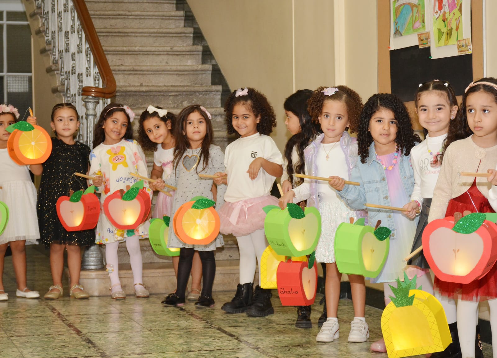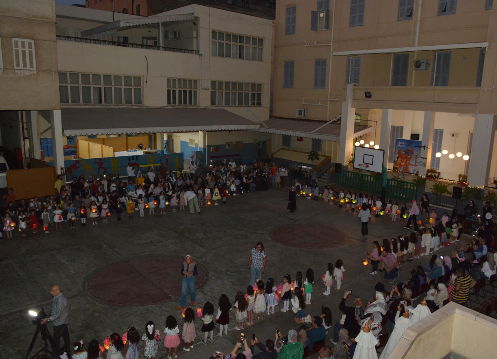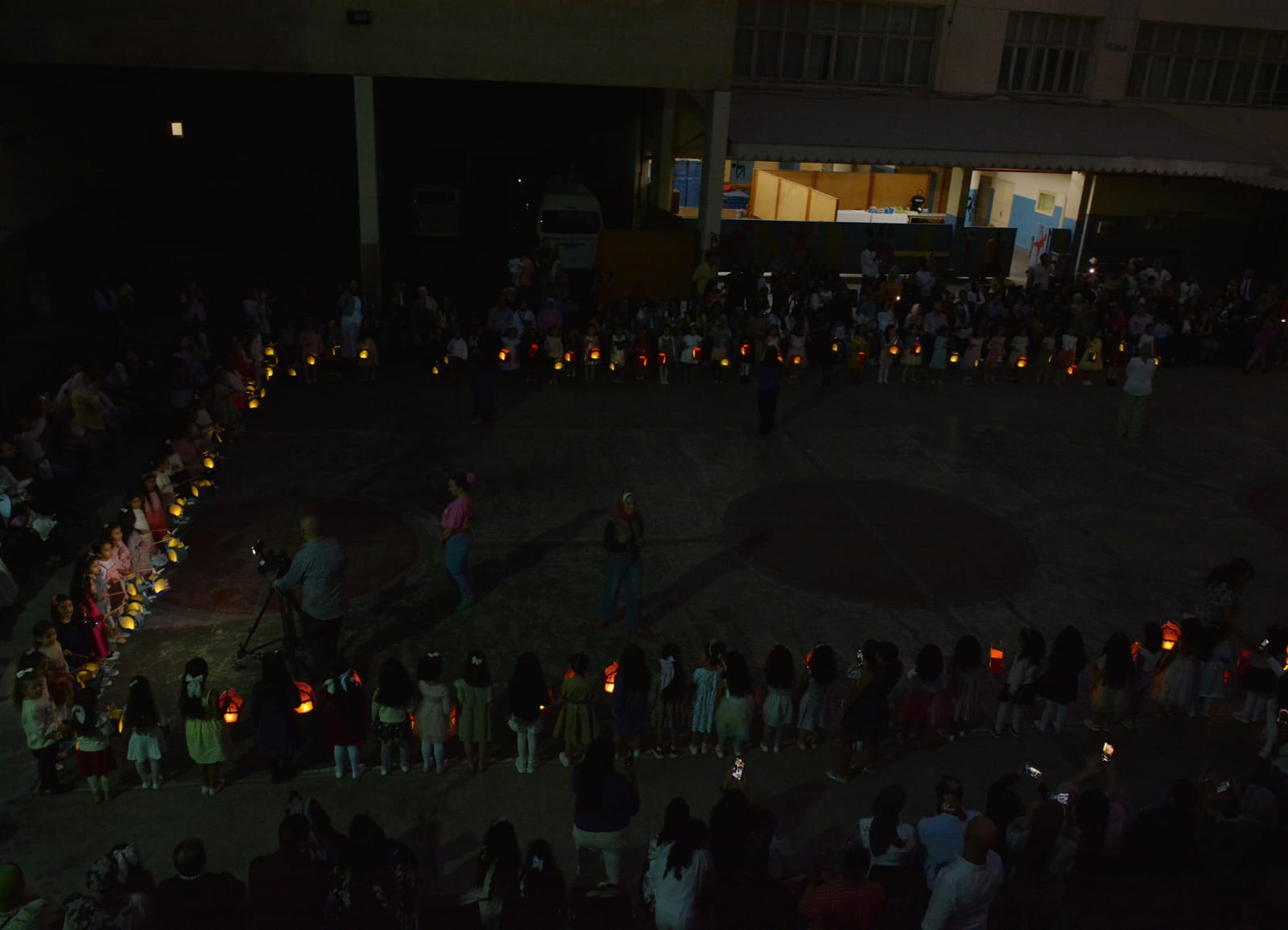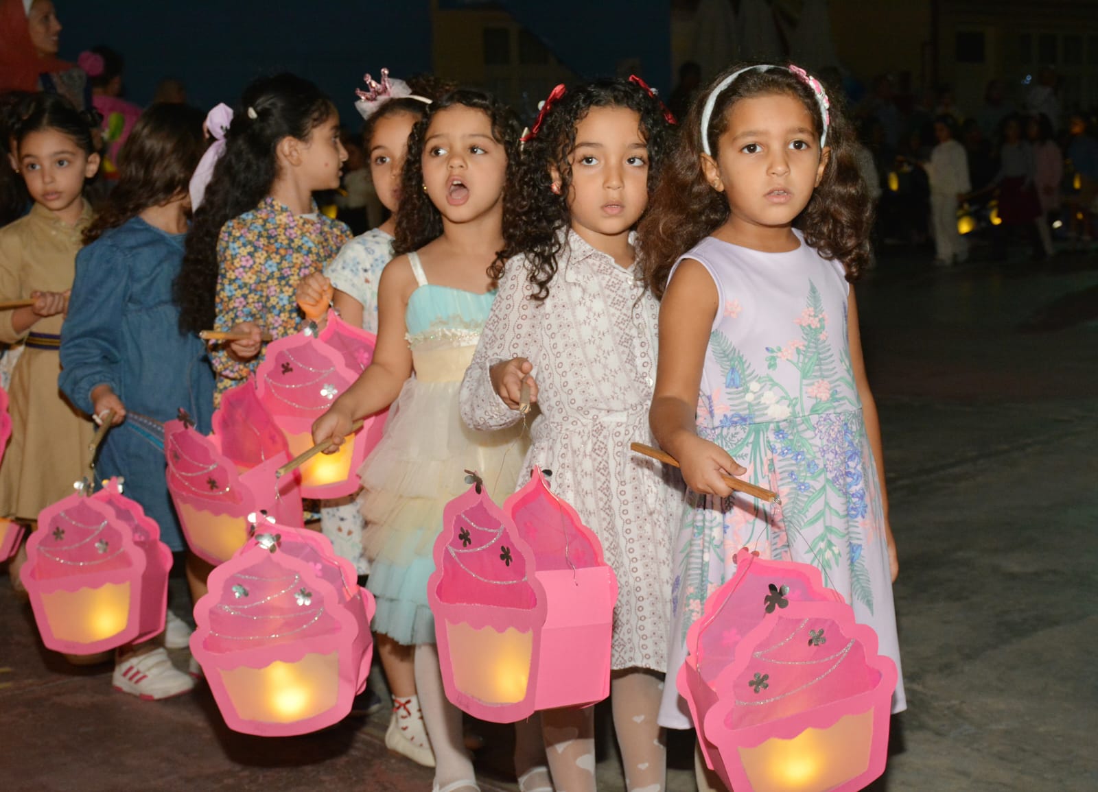 تألقت فوانيس الفاكهة والـكعك (كب كيك) الخاصة بصفّي رياض الأطفال في ظلمة المساء، وتبعهتا فوانيس البحارة والنورس الخاصة بفصلي صف المرحلة التمهيدية.