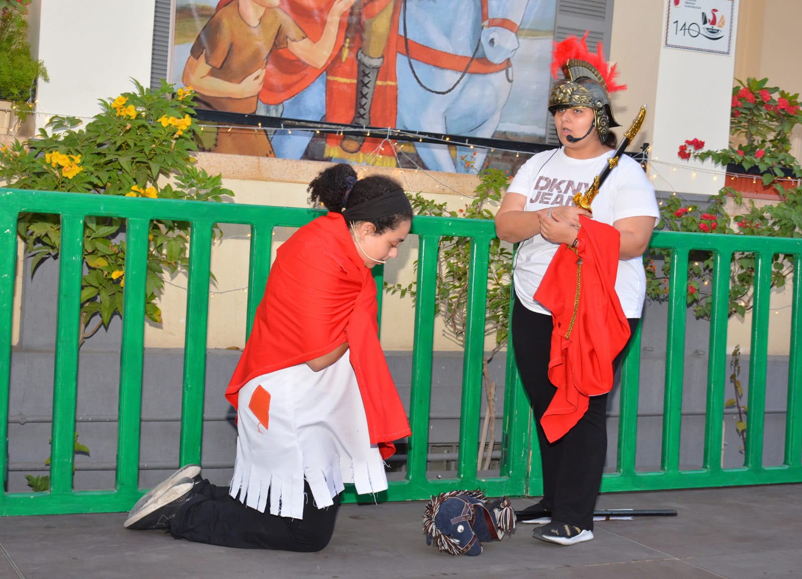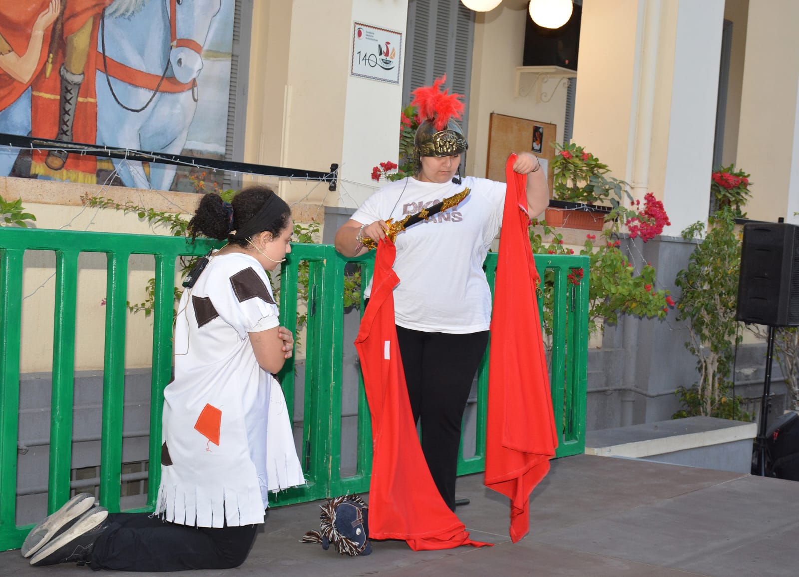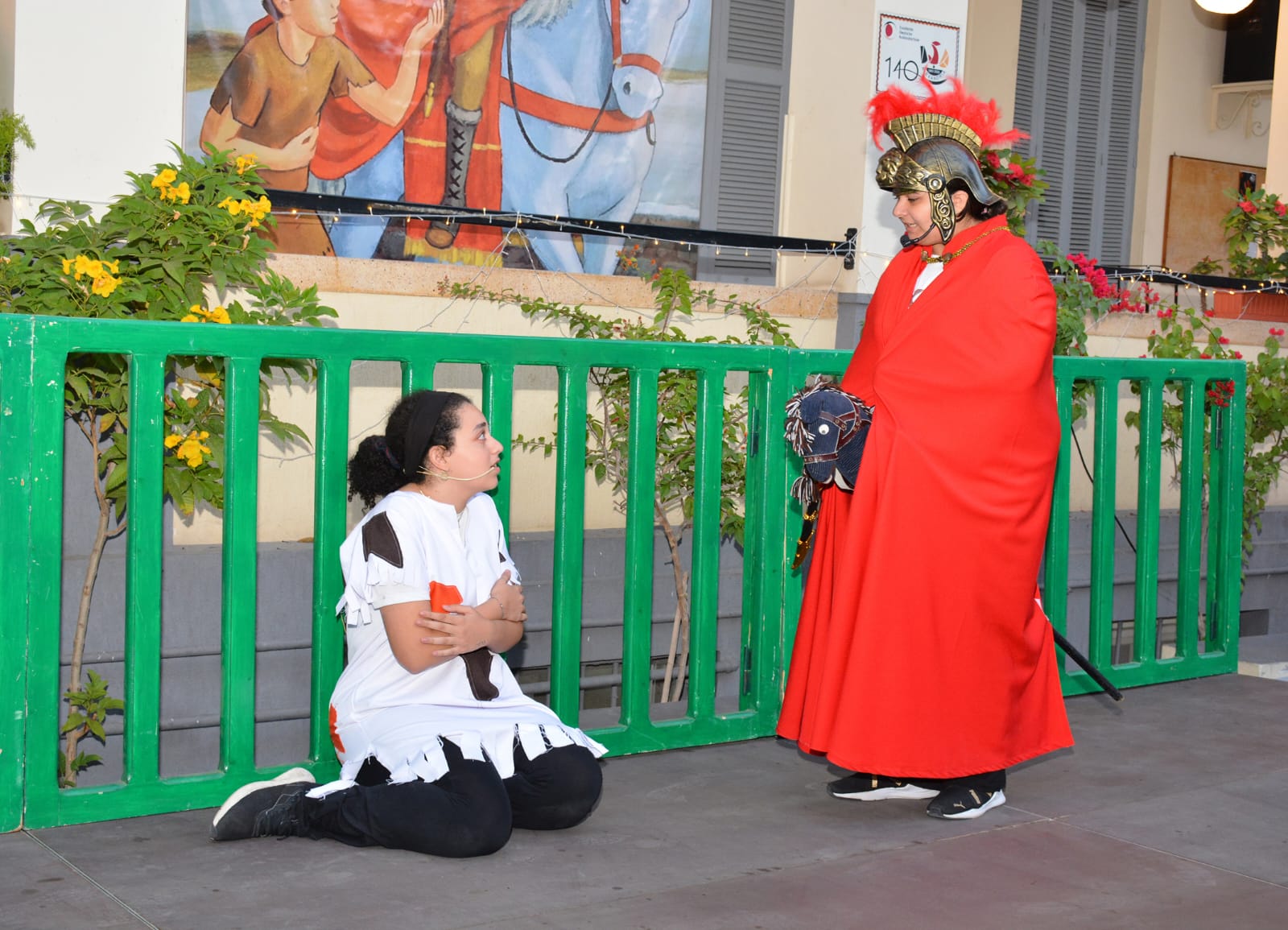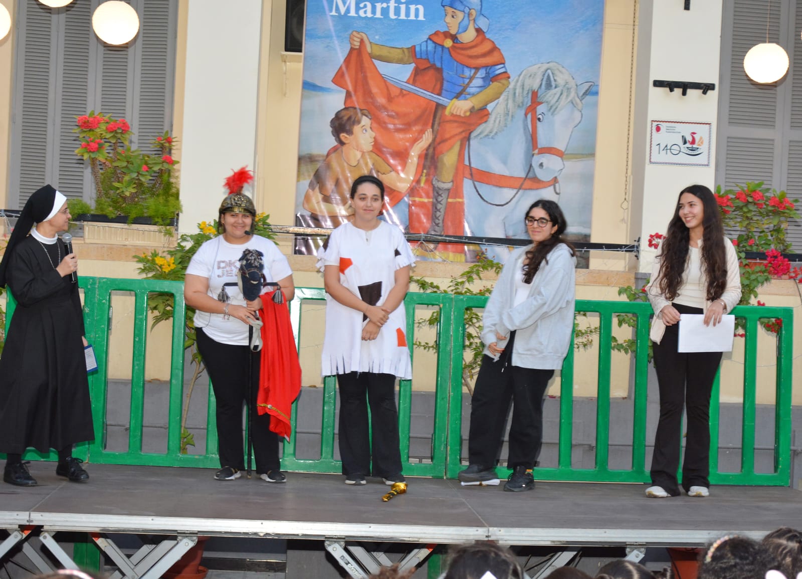 استقبلت الأخت كلارا أولياء الأمور بكلمة افتتاحية، وبعد وقت قصير ظهر القديس مارتن راكبًا حصانه على المسرح، حيث التقى بالفقير المحتاج. وقد أدّت طالبات الصف الثاني عشر هذا المشهد، إضافةً إلى تقديم الخلفية التاريخية لهذه المناسبة التّقليديّة الهامة.