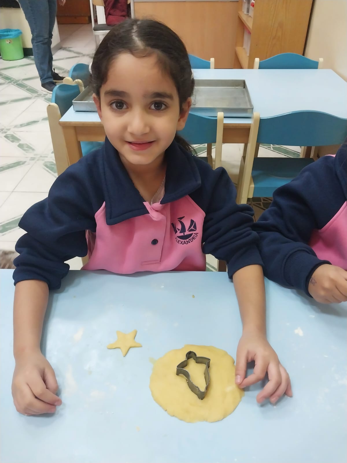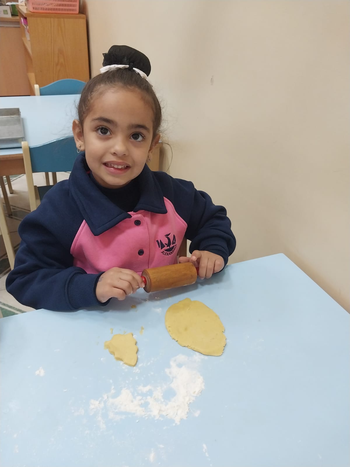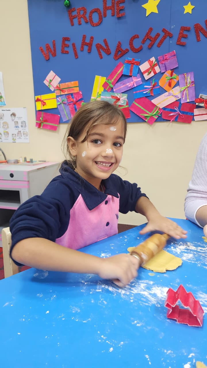 بدأت كل مجموعةٍ بالعمل ضمن فرقٍ صغيرةٍ. وبأكمامٍ مرفوعة وقلوبٍ مليئة بالفرح، عجنت المدرسات العجين، الذي أعدّته الأخت ليديا، قليلًا مرةً أخرى، ثم فردنه بعنايةٍ. بعد ذلك سُمح لكل طفلٍ أن تُشَكّلَ قطع الكعك من نصيبها الخاص من العجين. حيث: القوالب المتاحة بأشكالٍ وأحجامٍ مختلفةٍ؛ نحو: النُّجوم وأشجار عيد الميلاد والأجراس. وبالطَّبع، لم تخلُ الأنوف الصغيرة من بعض بقع الدقيق، ممَّا ضاعف المتعة والضَّحك.