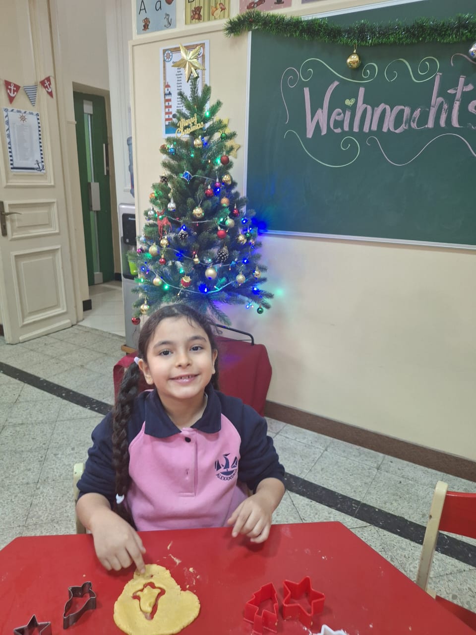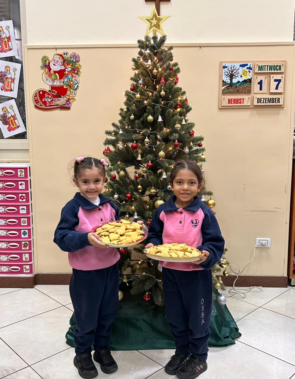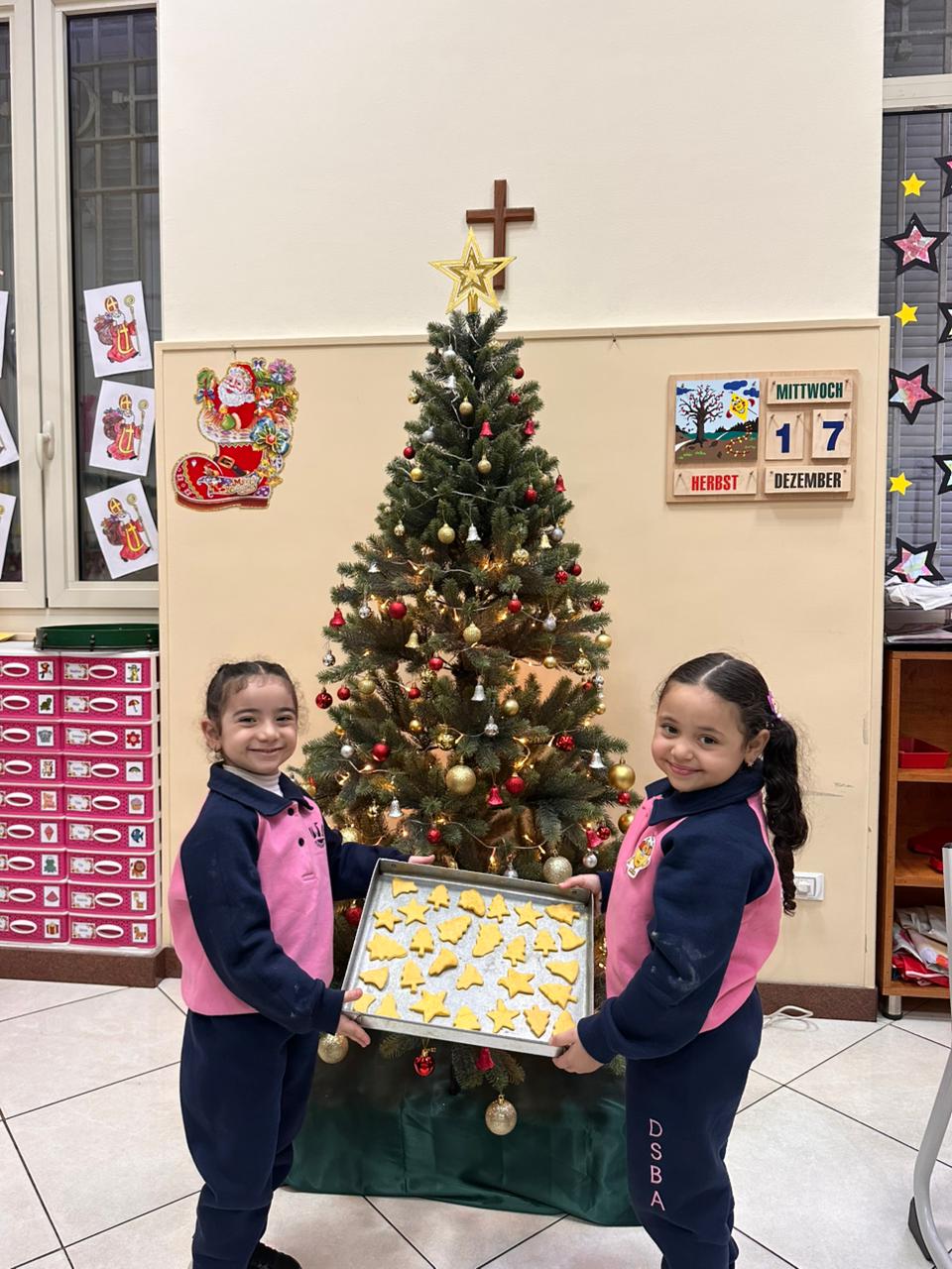 بدأت كل مجموعةٍ بالعمل ضمن فرقٍ صغيرةٍ. وبأكمامٍ مرفوعة وقلوبٍ مليئة بالفرح، عجنت المدرسات العجين، الذي أعدّته الأخت ليديا، قليلًا مرةً أخرى، ثم فردنه بعنايةٍ. بعد ذلك سُمح لكل طفلٍ أن تُشَكّلَ قطع الكعك من نصيبها الخاص من العجين. حيث: القوالب المتاحة بأشكالٍ وأحجامٍ مختلفةٍ؛ نحو: النُّجوم وأشجار عيد الميلاد والأجراس. وبالطَّبع، لم تخلُ الأنوف الصغيرة من بعض بقع الدقيق، ممَّا ضاعف المتعة والضَّحك.
