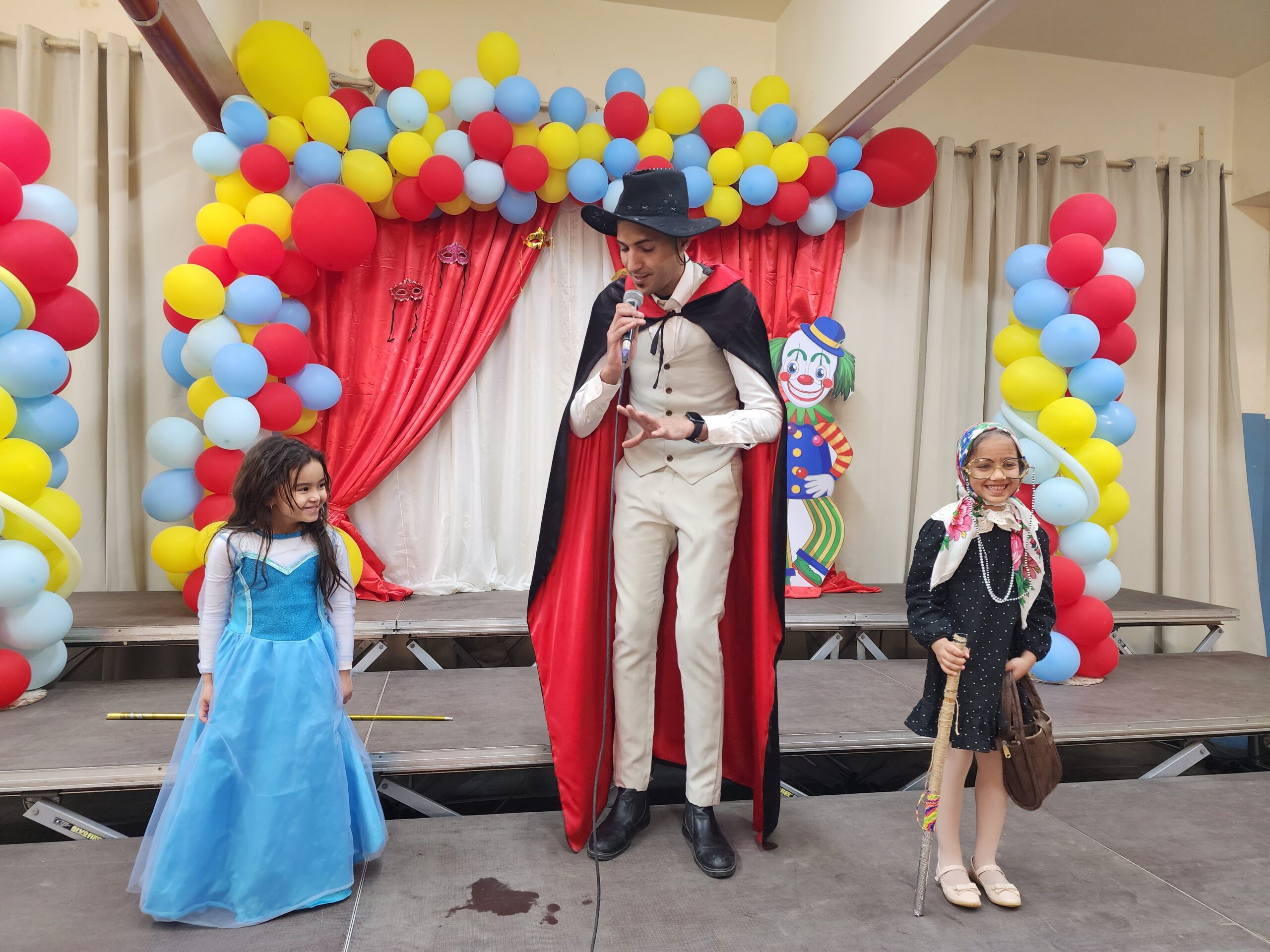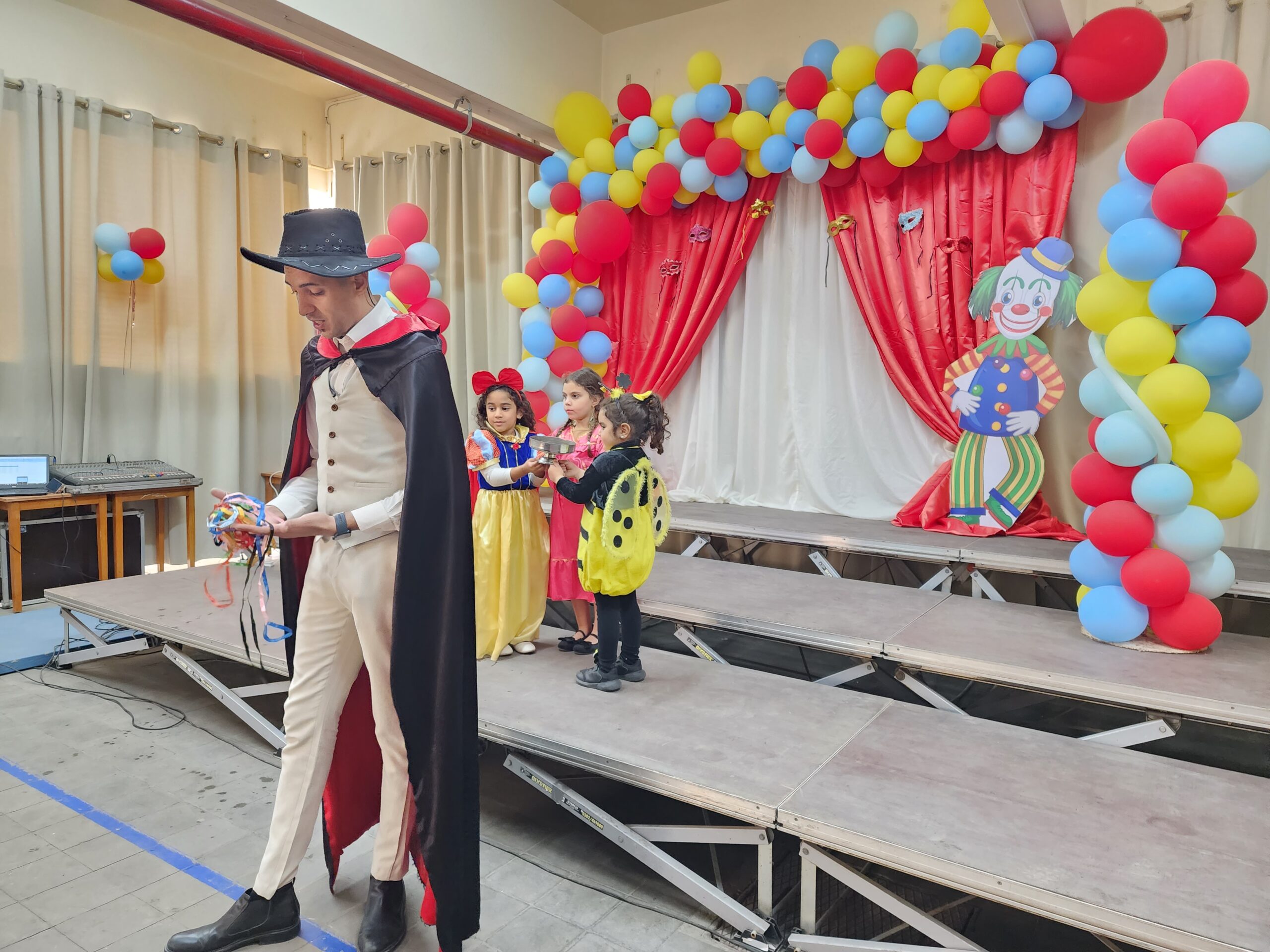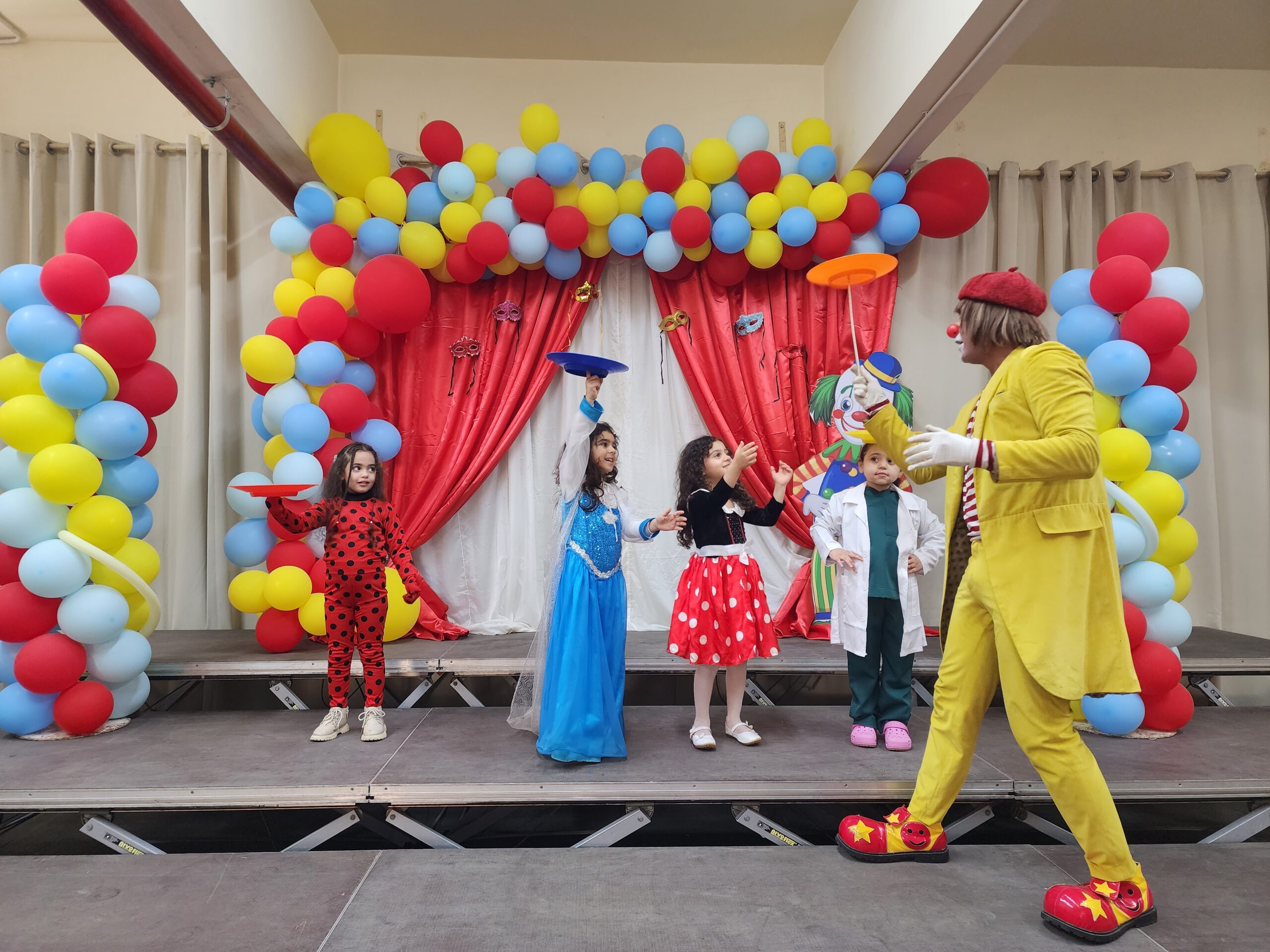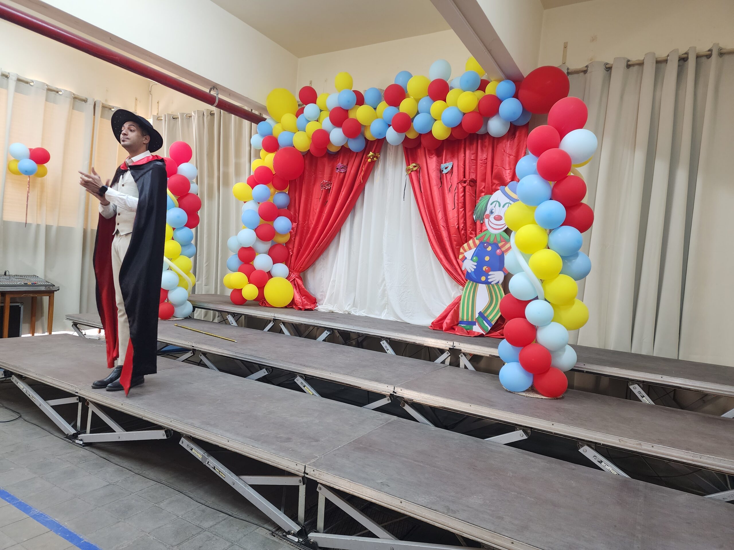 Gesättigt und zufrieden ging es in die festlich geschmückte Turnhalle, wo schon ein schabernacktreibender Clown mit Zaubereien die Kinder in seinen Bann zog.