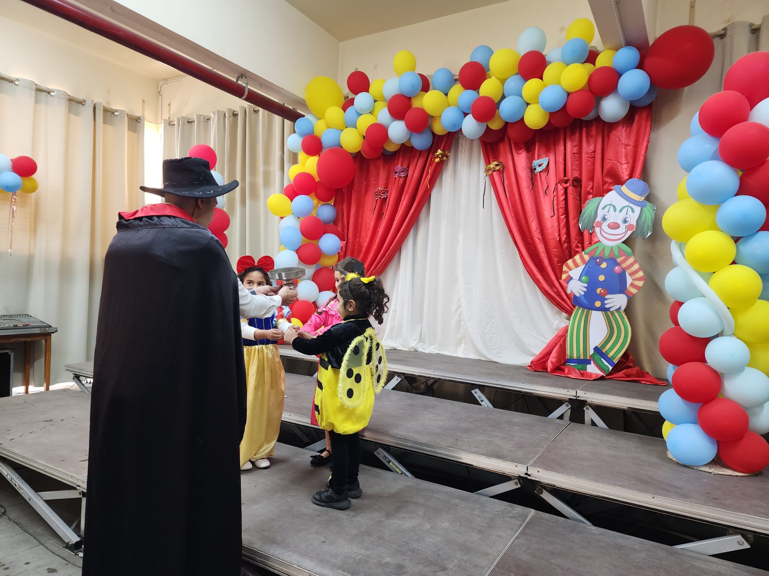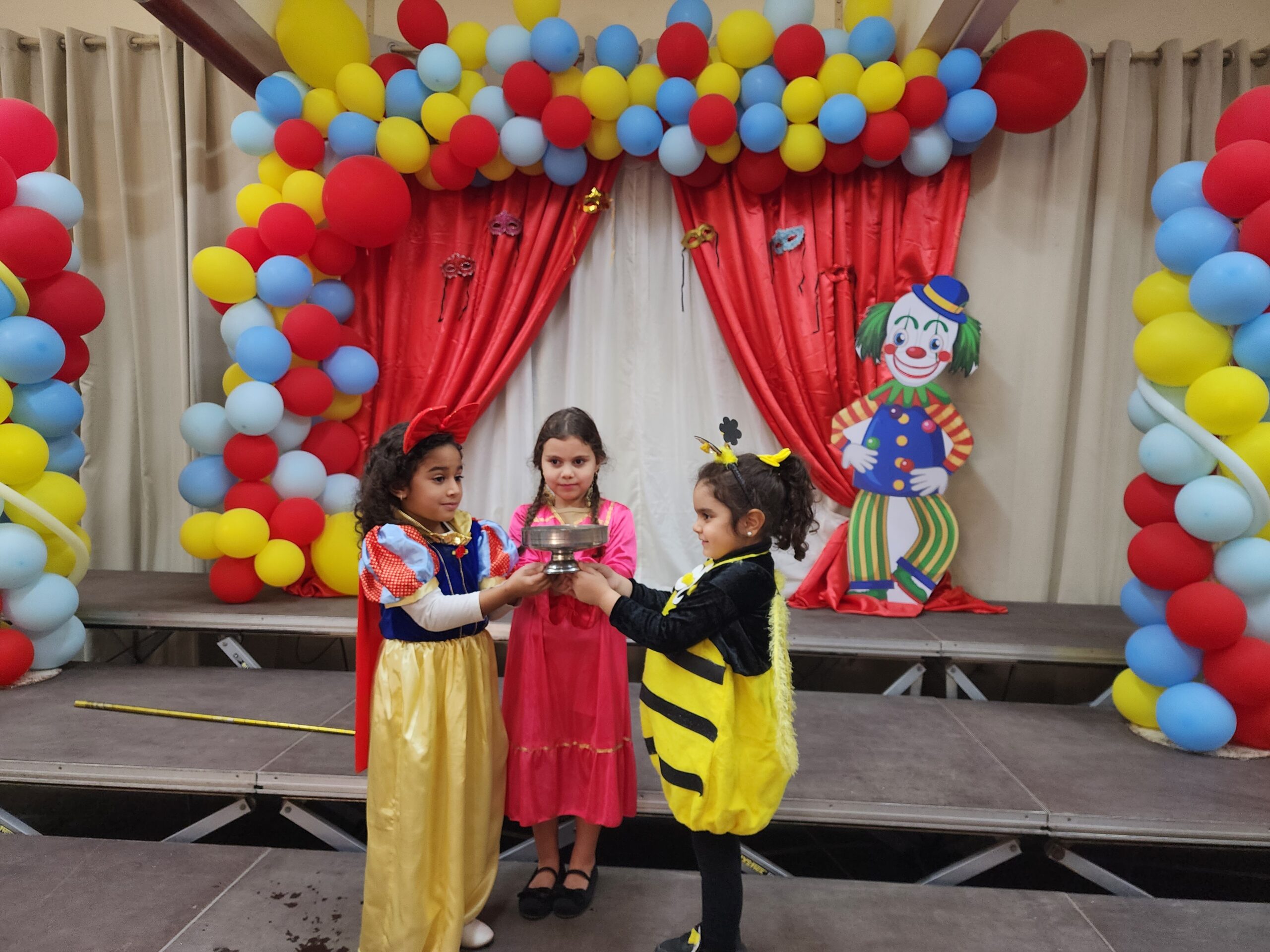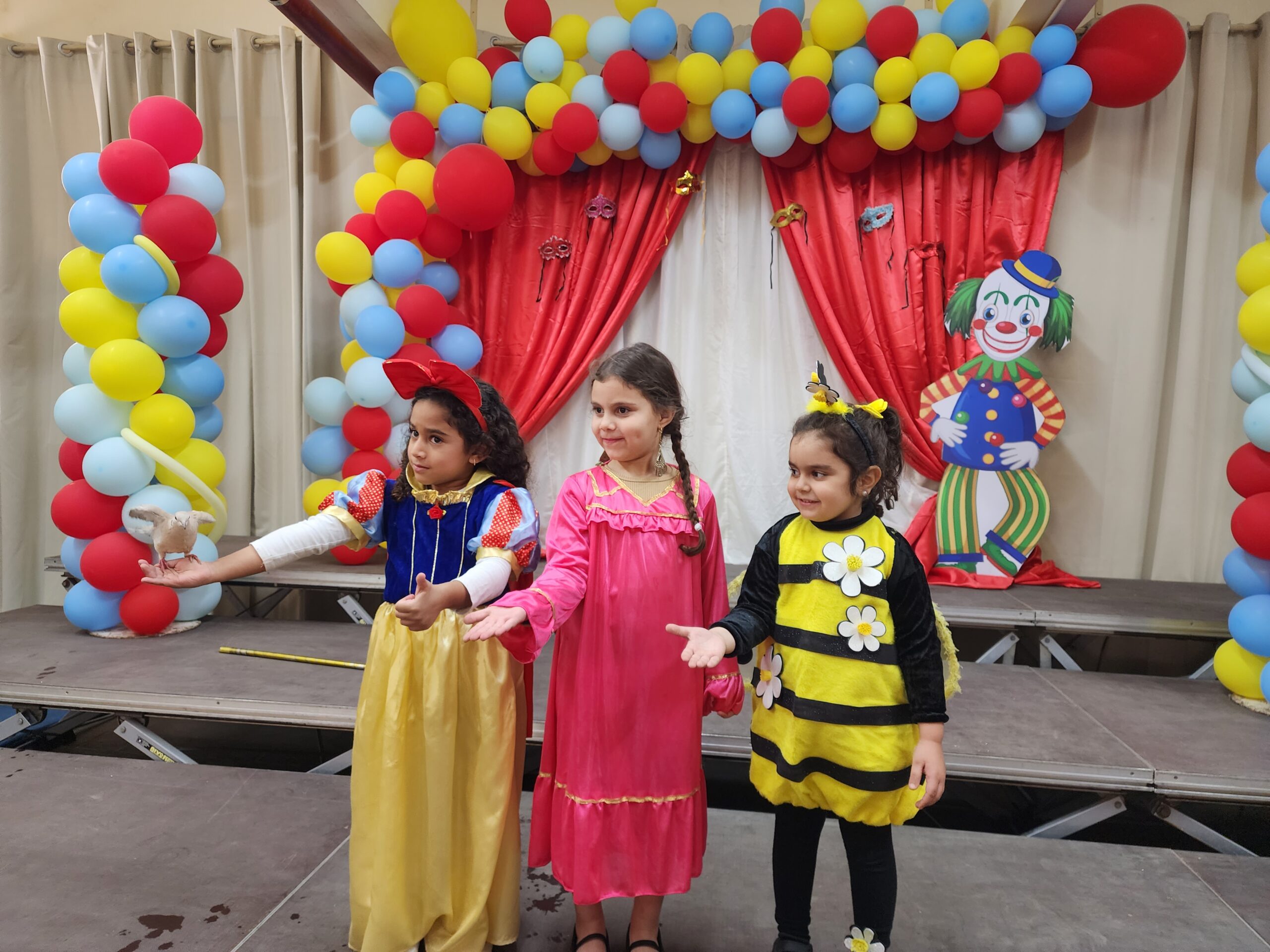 Voller Vorfreude auf den besonderen Tag kamen die Kindergartenkinder in allerlei Verkleidungen. Angefangen bei Schneewittchen und Flugbegleiterin, über Sängerin und Hexe, bis hin zum Bienchen war alles dabei. Nach dem gemeinsamen Singen und Tanzen mit den großen Schülerinnen fand in unseren Gruppenräumen das gemeinsame Frühstück statt. Die Elternschaft stellte ein leckeres Frühstück zur Verfügung und die Kinder konnten nach Herzenslust schlemmen und genießen.