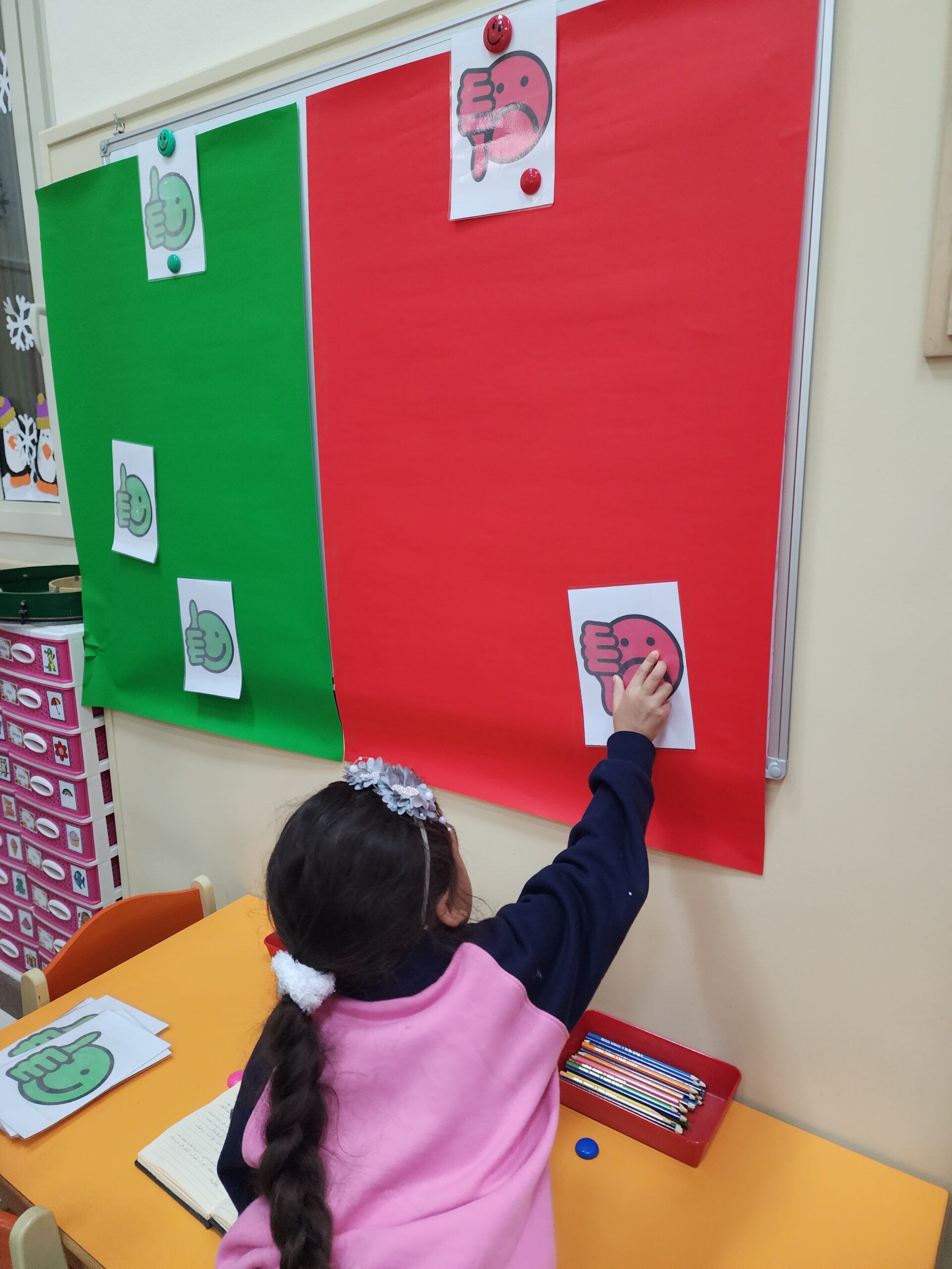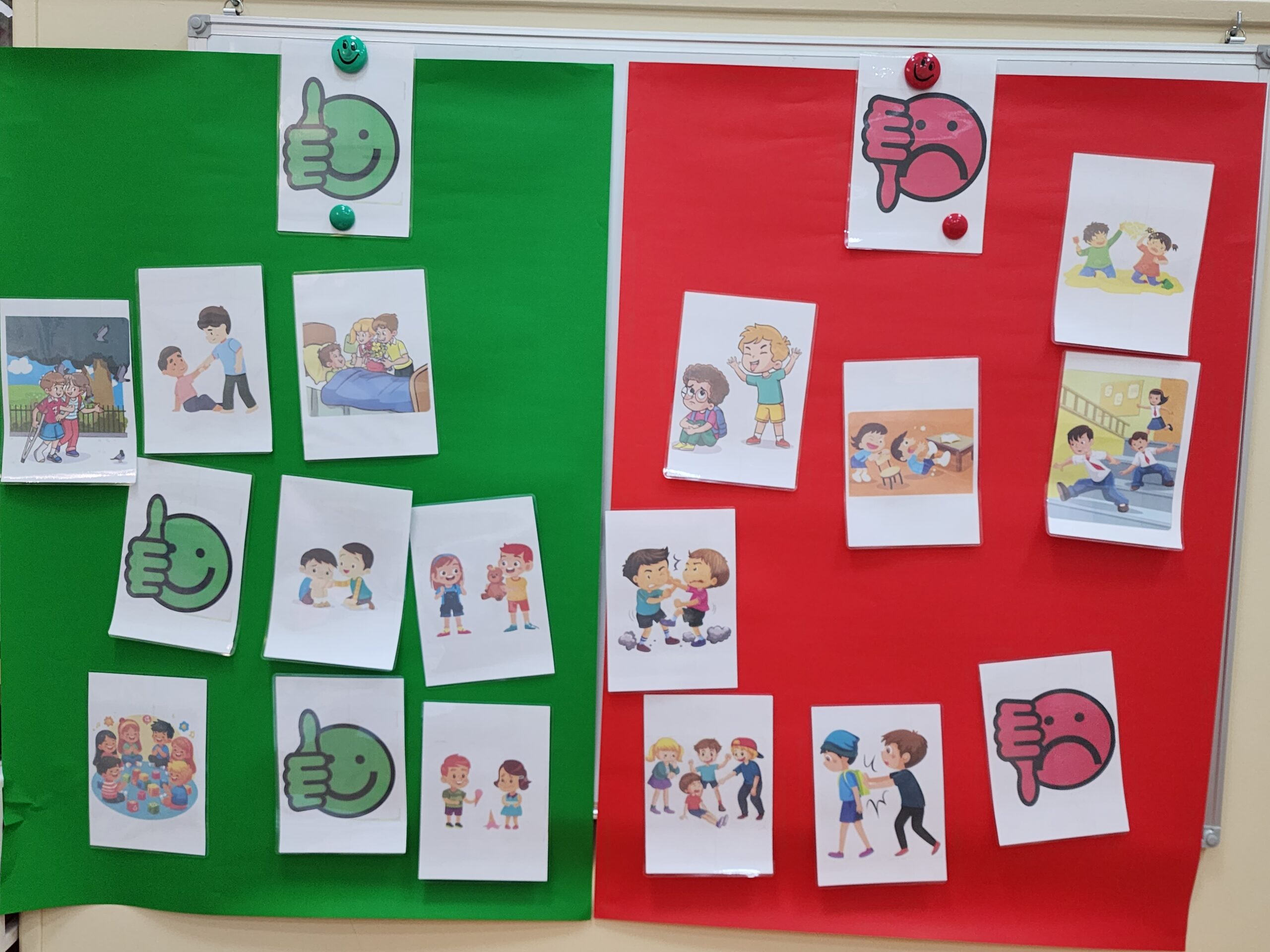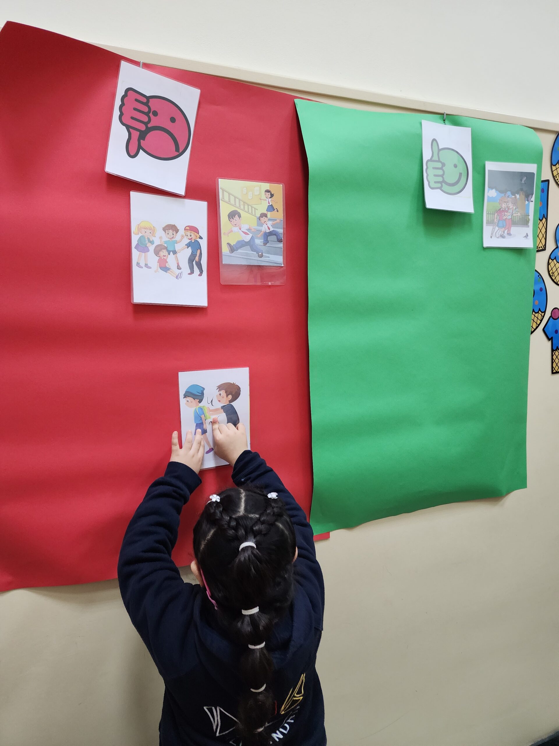 Dies wurde durch Aktivitäten im Klassenraum deutlich gemacht, bei denen wir Situationen darstellten, die richtiges und falsches Verhalten zeigten.