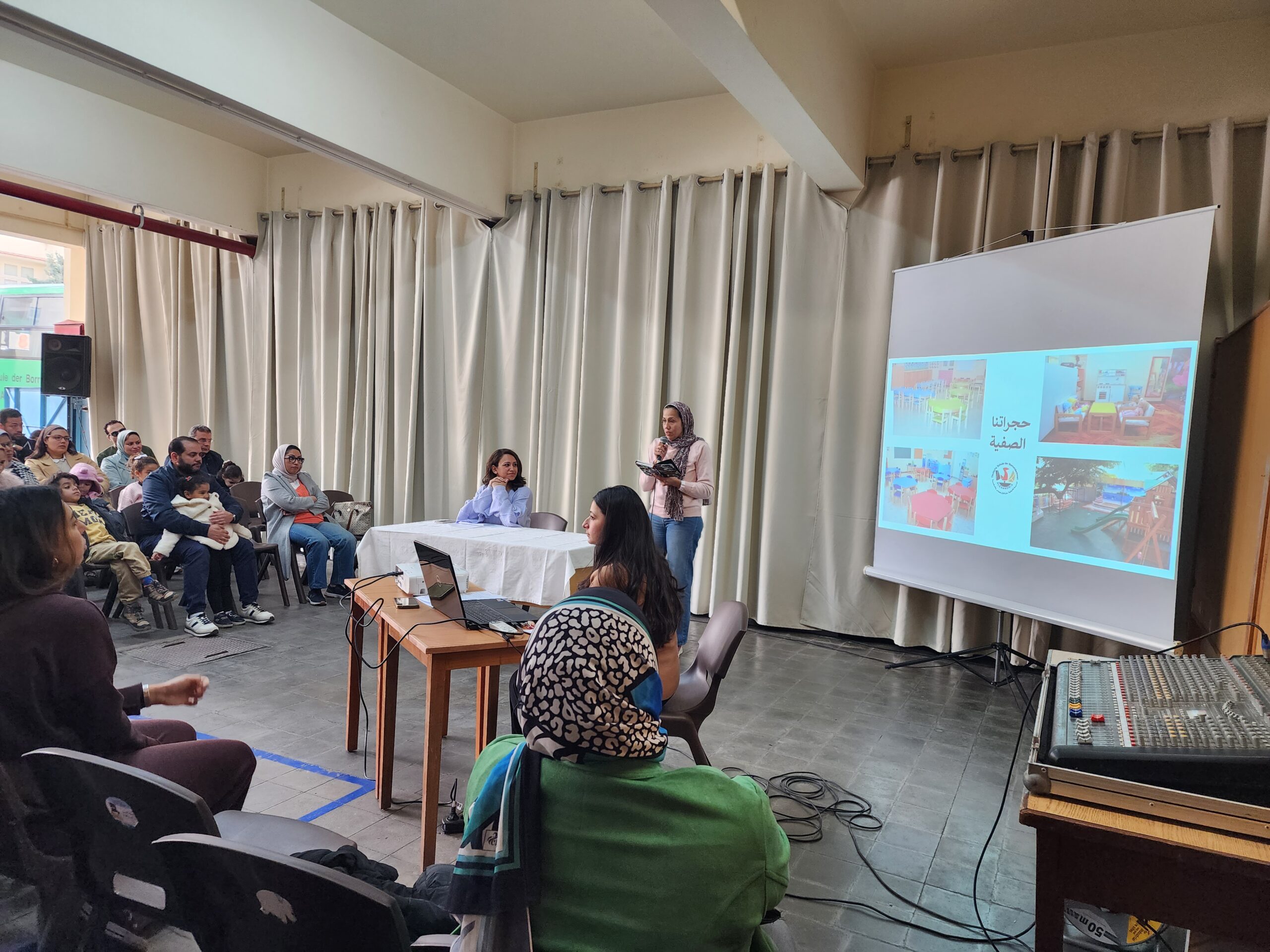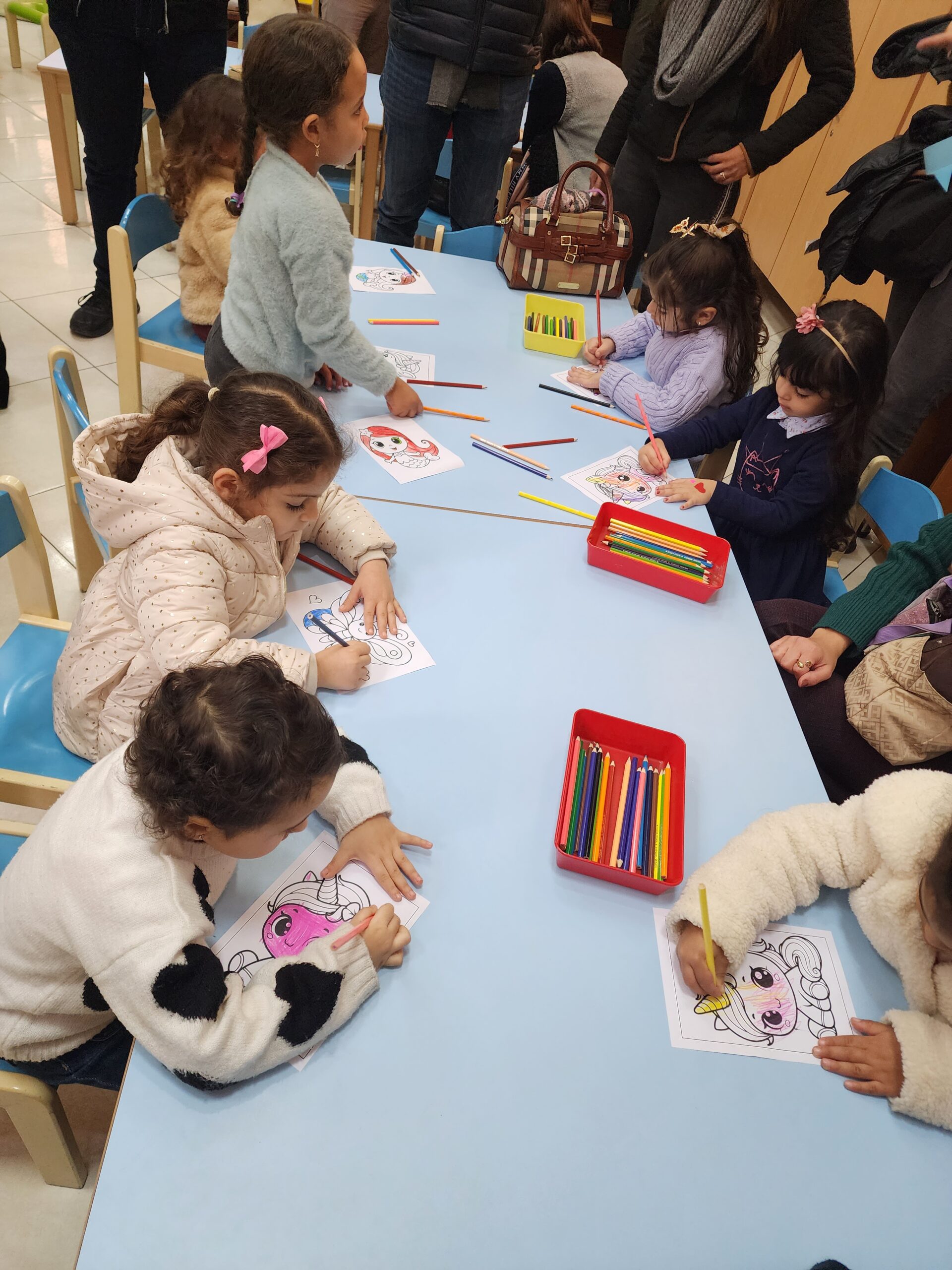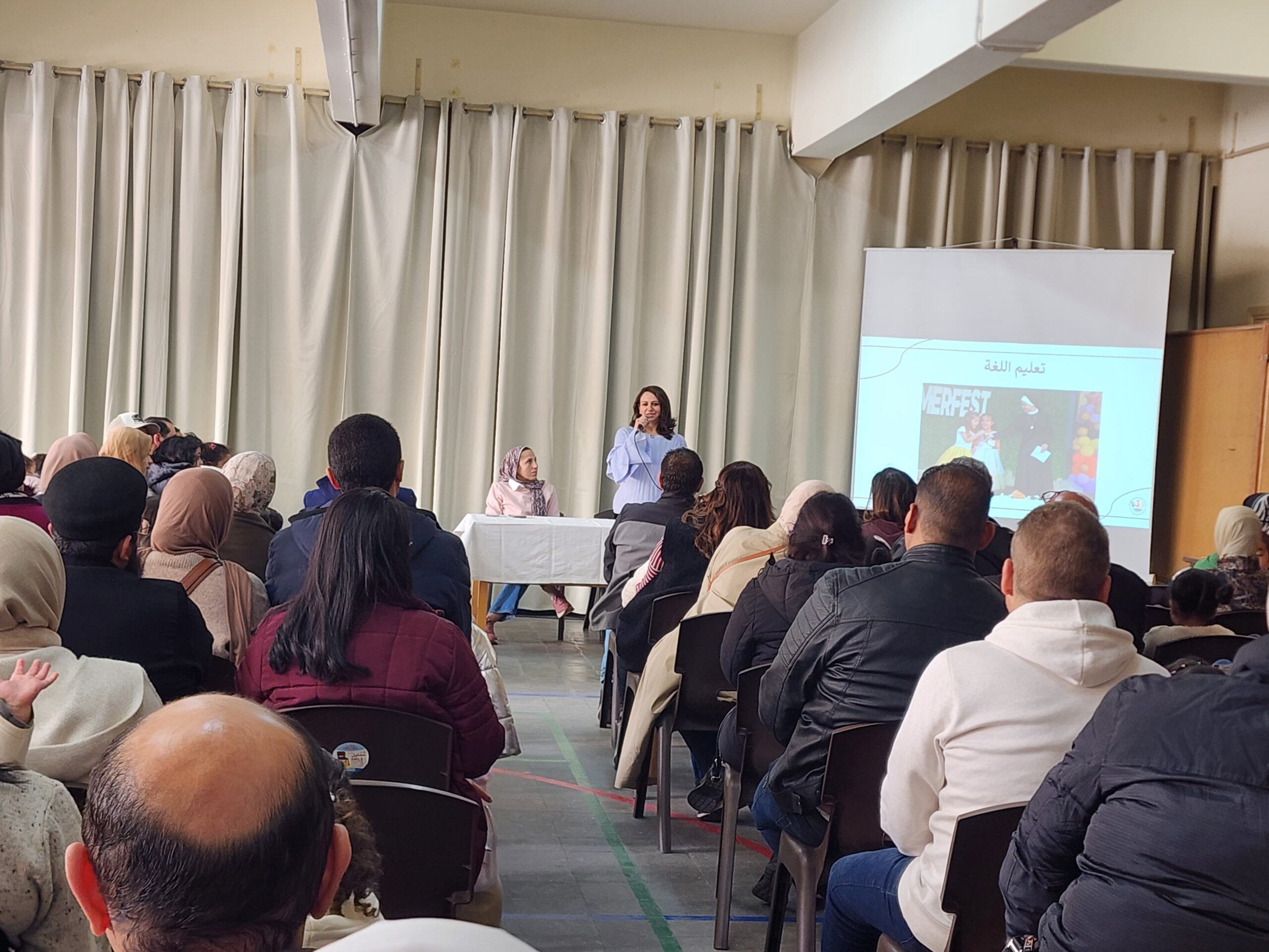 Die Turnhalle diente als Vortragssaal; hier boten Sr. Klara, Frau Carola, Frau Dina und Frau Marianne den Eltern Einblicke in das Schulleben an der DSBA. Sie erläuterten Strukturen, Ziele und Abläufe des Kindergartens und der Institution deutsche Schule.