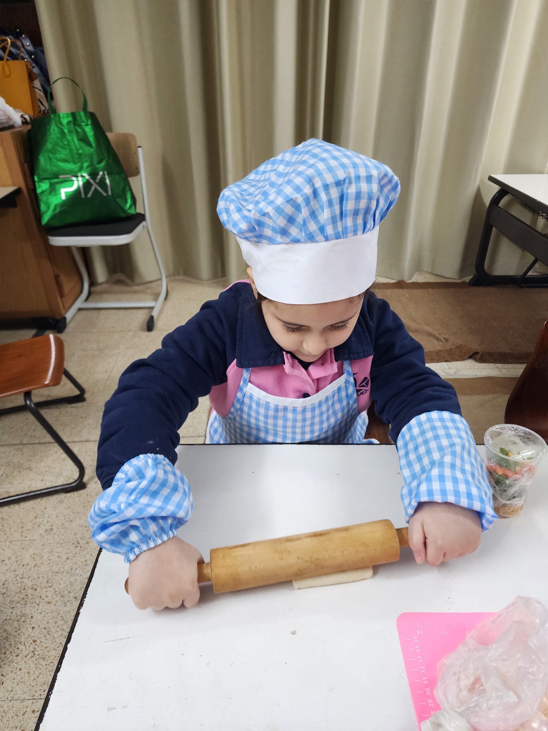Danach widmeten sie sich der Hauptspeise: Sie rollten den Pizzateig aus, stachen mit Förmchen Sterne aus und belegten diese, bevor sie ebenfalls gebacken wurden.