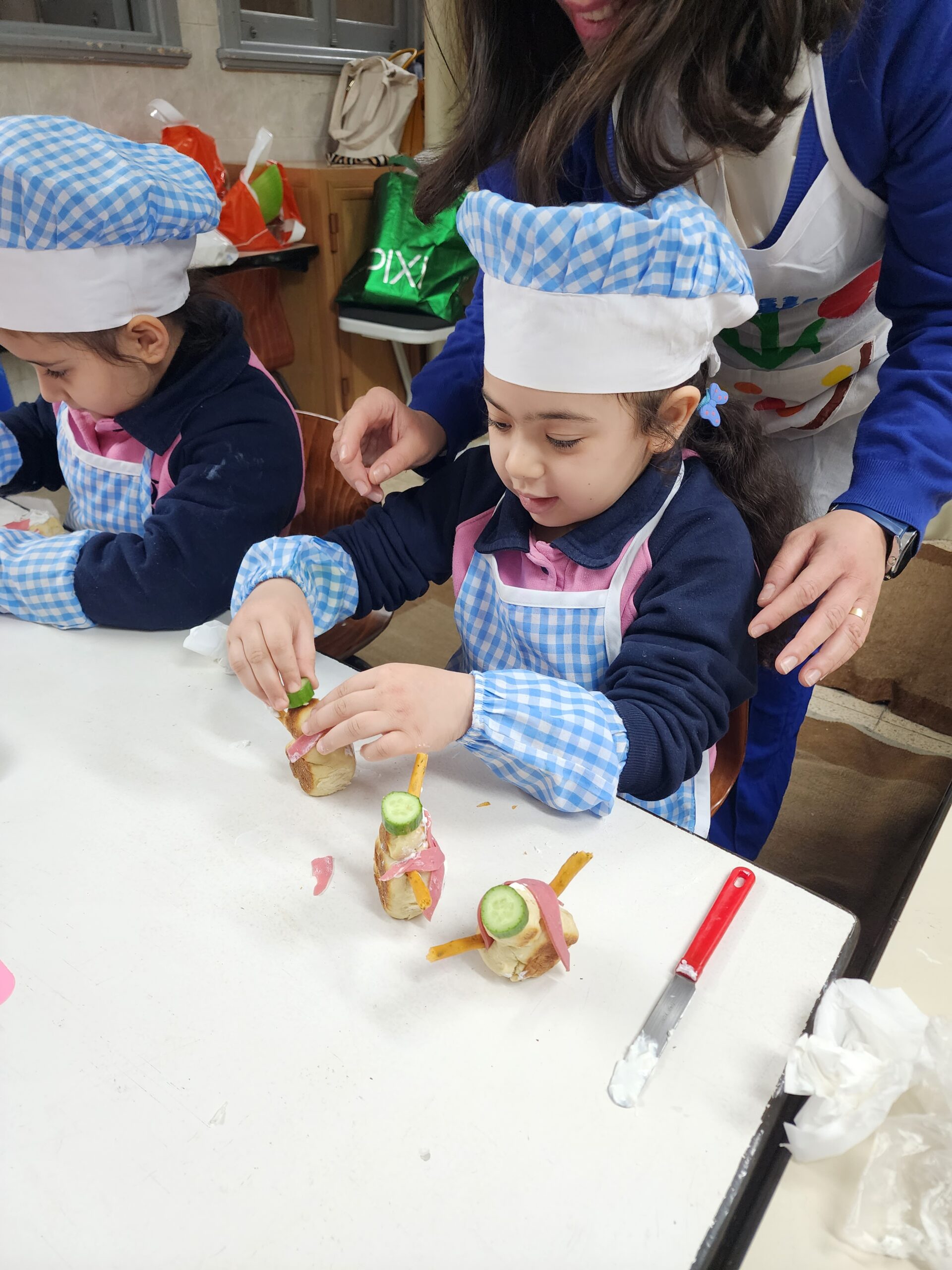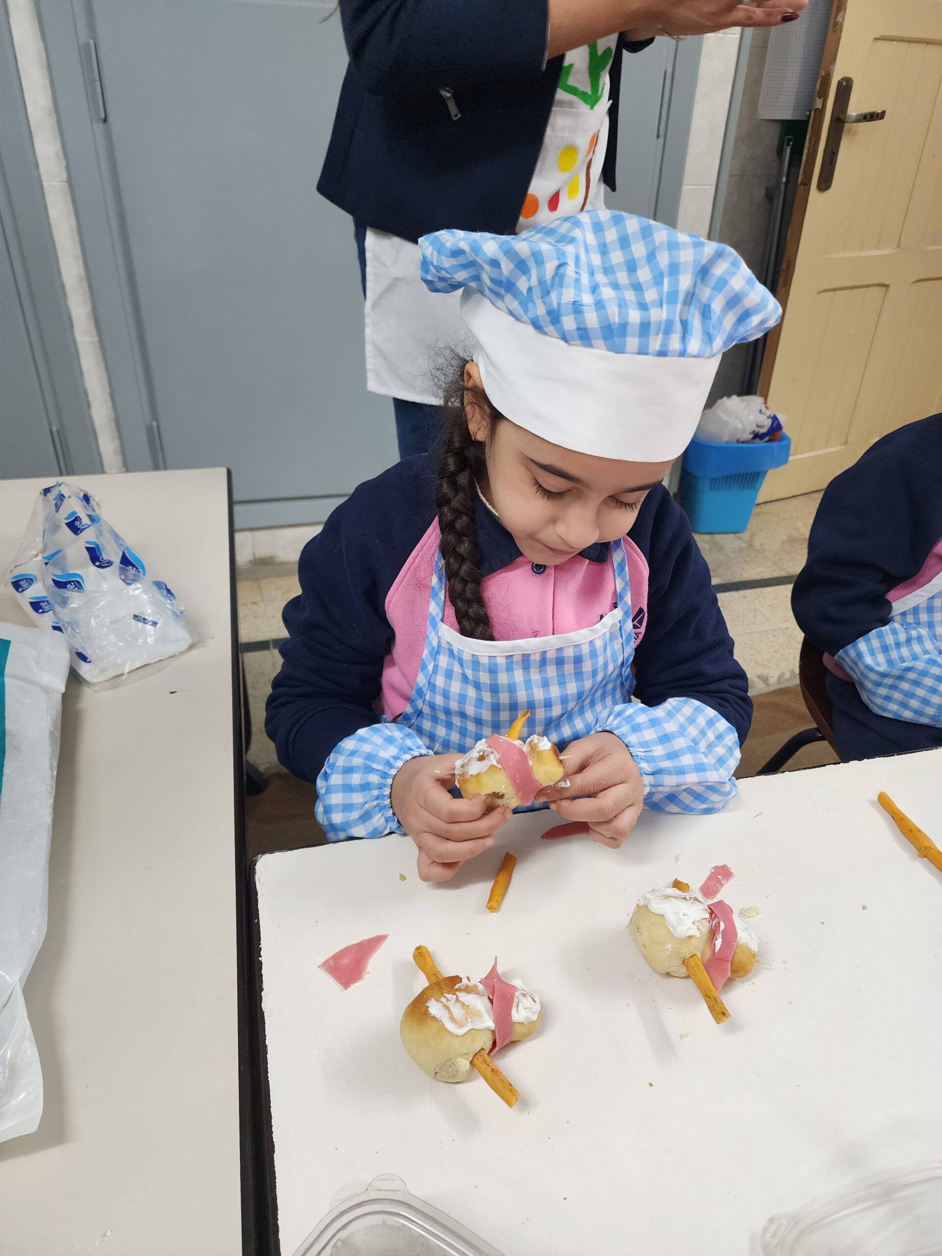 Ein besonderes Highlight war die Dekoration des Gebäcks. Mit viel Kreativität verwandelten die Mädchen die Backwaren in Pinguine und Schneemänner. Sie bestrichen das Gebäck mit weißem Käse und formten aus Oliven die Augen. Kleine Karottendreiecke dienten dabei als Füße für die Pinguine und als Nasen für die Schneemänner.