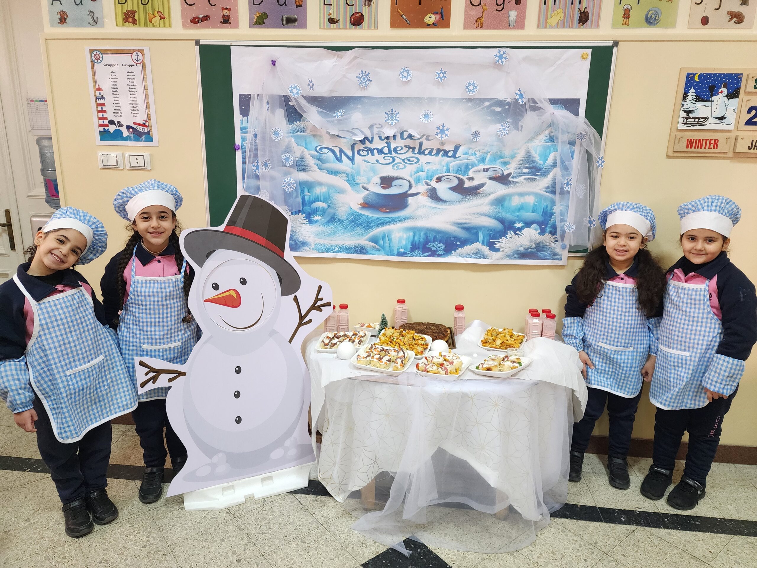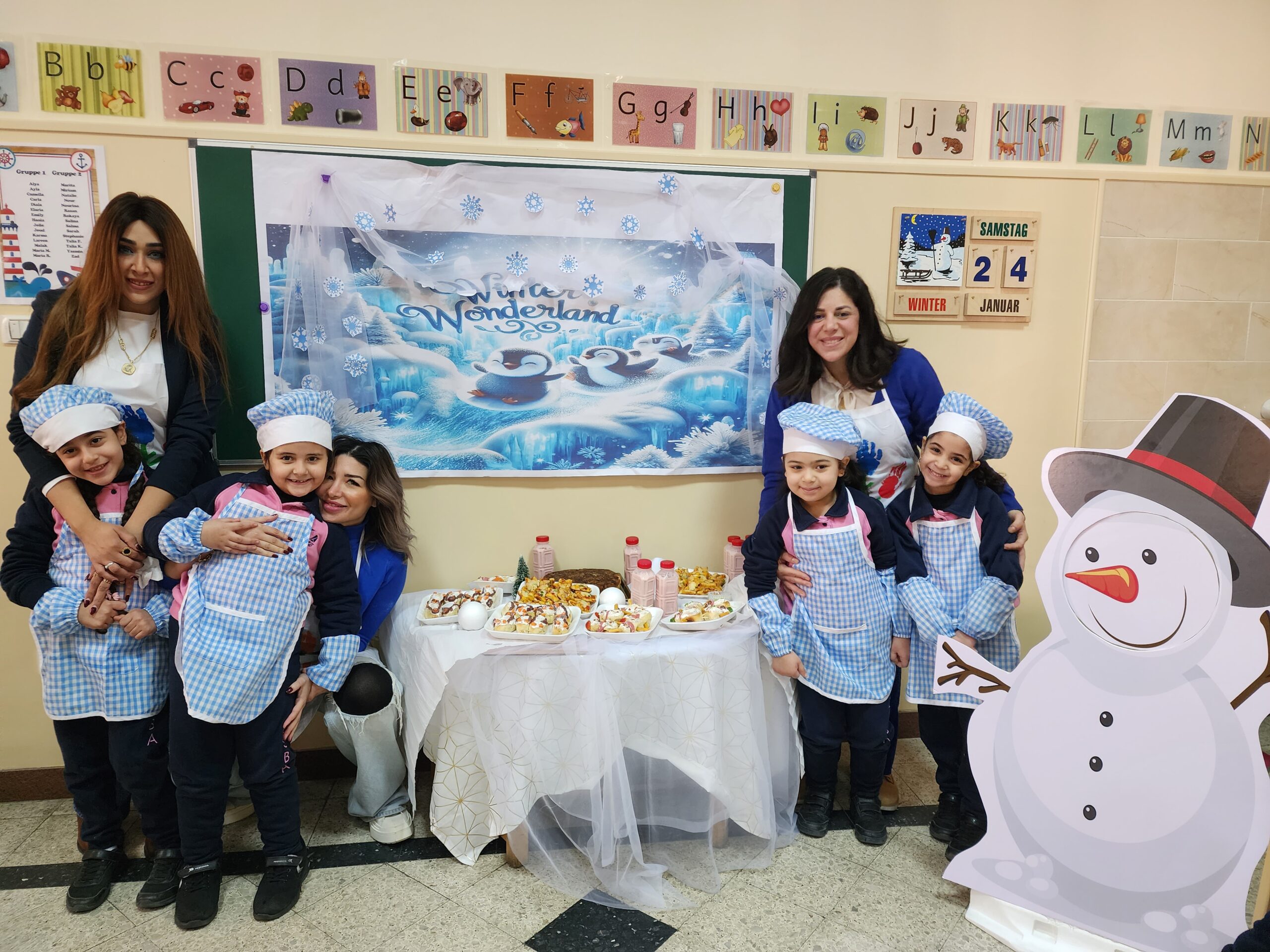 Auch der Raum war passend zum Thema mit Postern und einem großen Schneemann dekoriert. Die Mädchen hatten sehr viel Spaß beim Kochen, und die ganze Klasse war von dem tollen Essen begeistert.