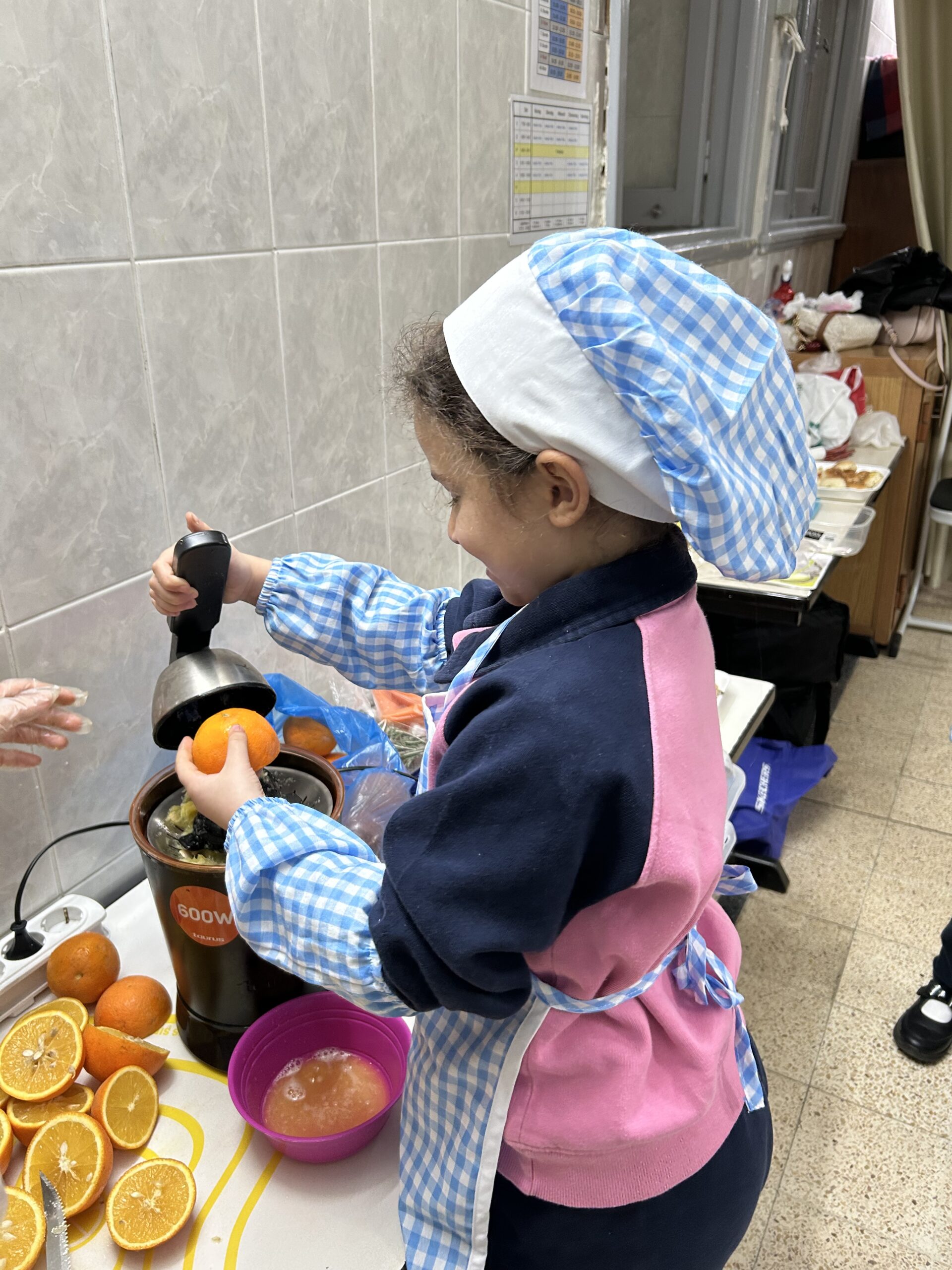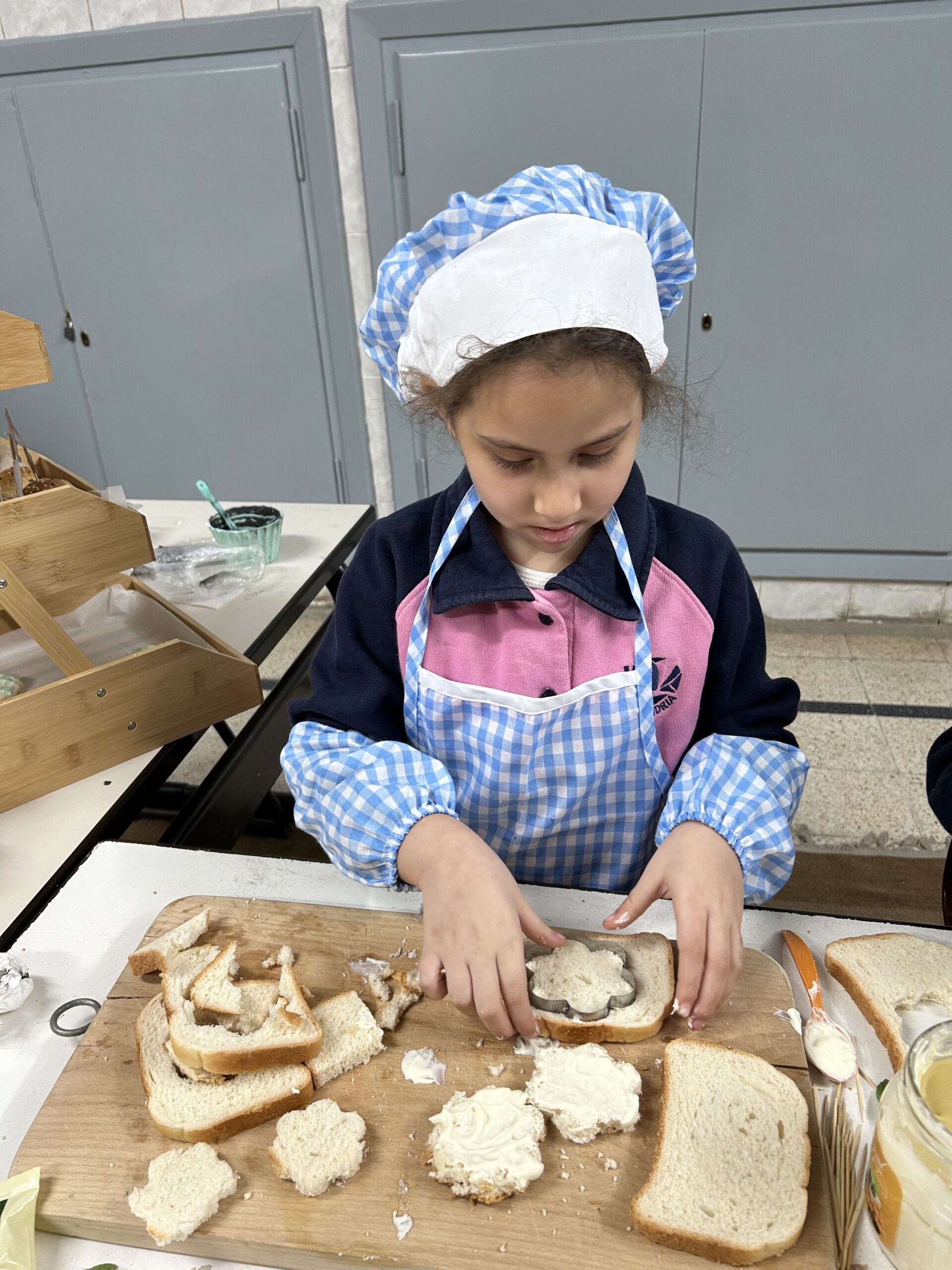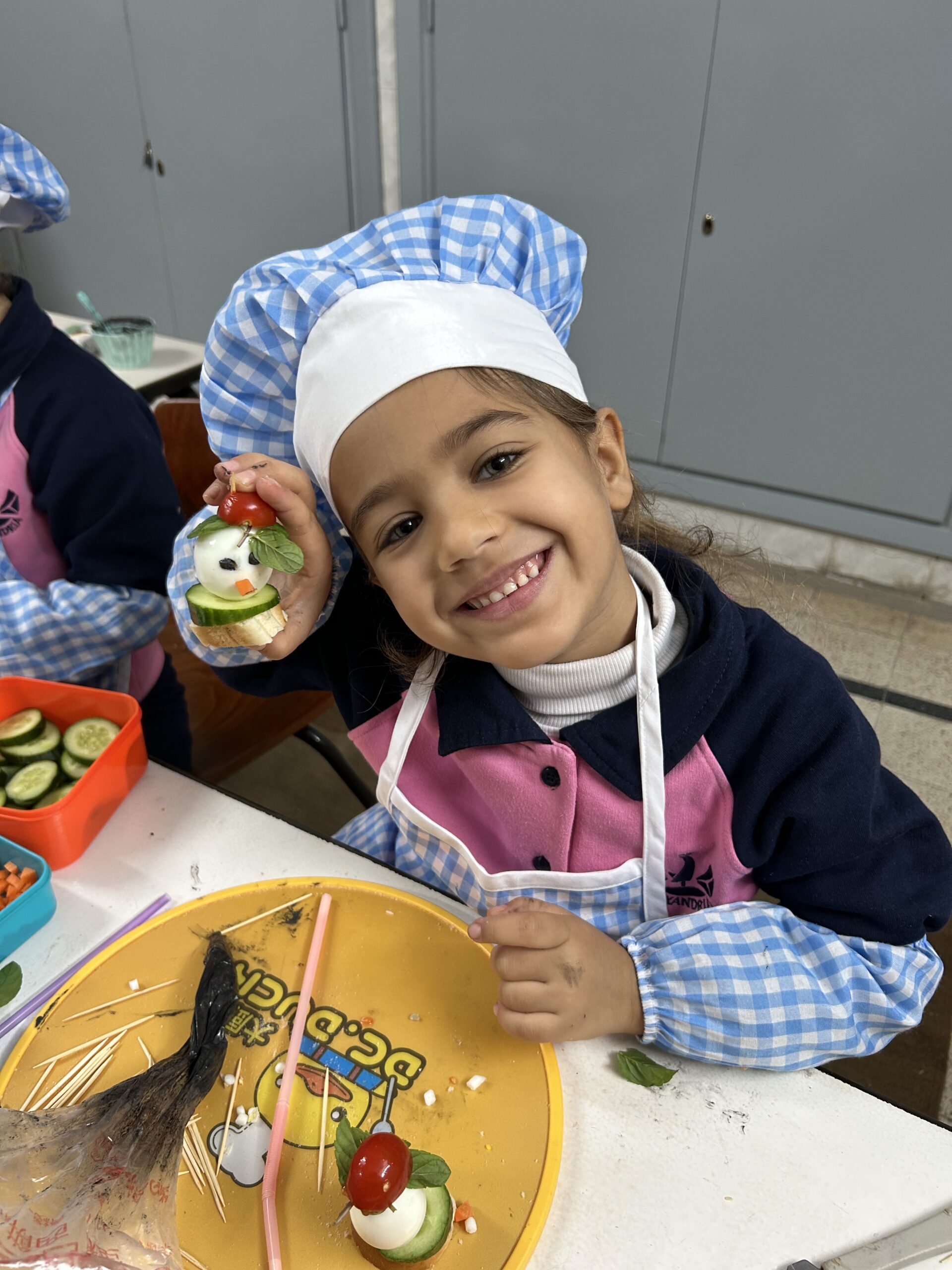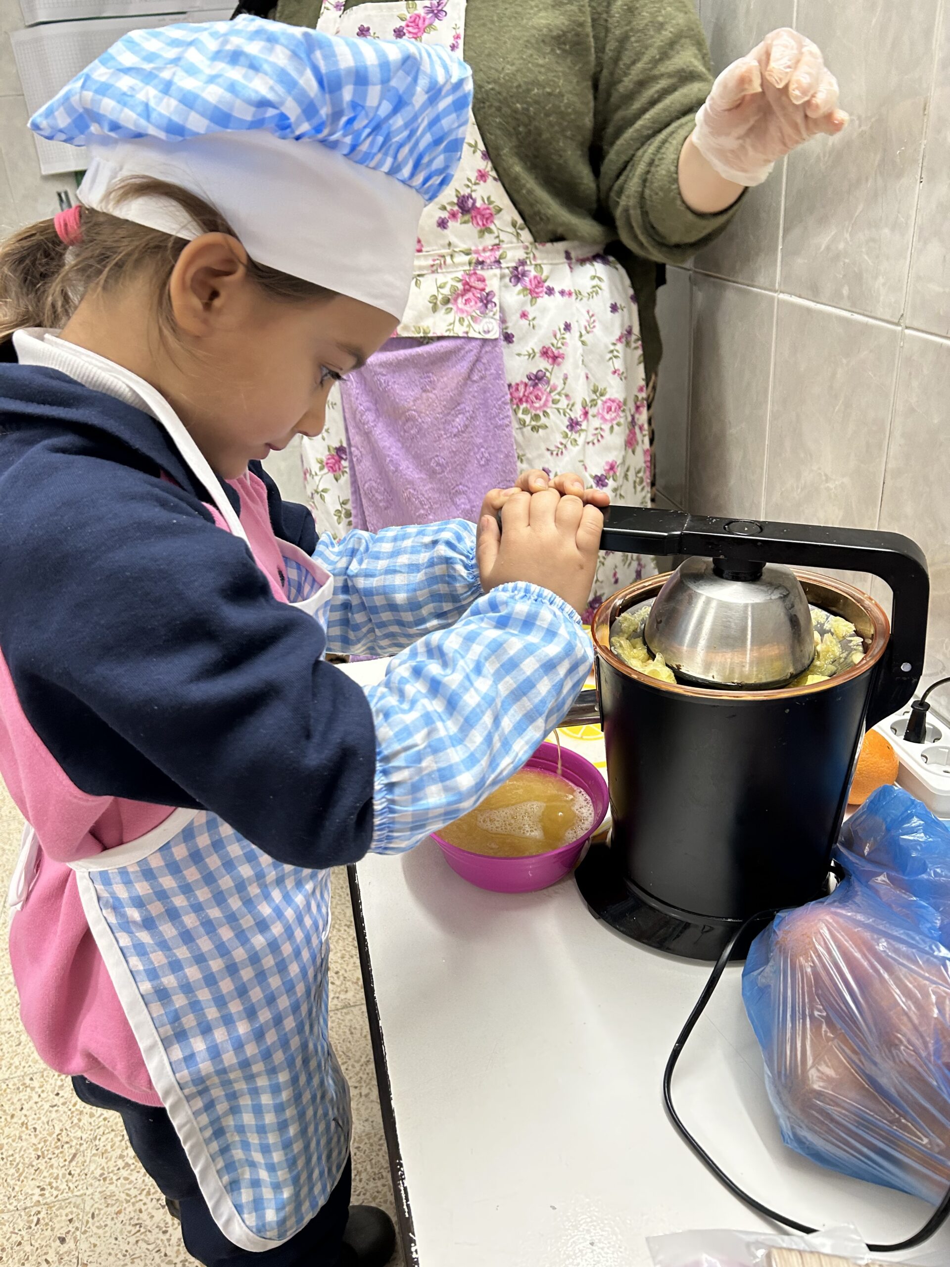Unsere Vorschülerinnen Dania, Hania, Dalida und Tia kamen heute in den Genuss, mit den Müttern Fr. Yara, Fr. Yasmine und Fr. Kheloud das Essen zuzubereiten.