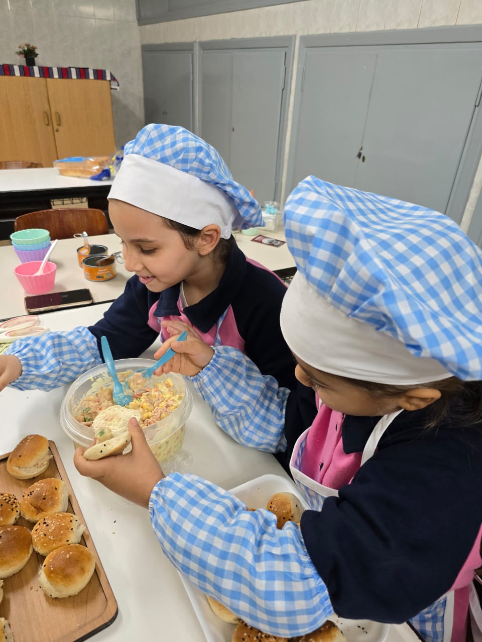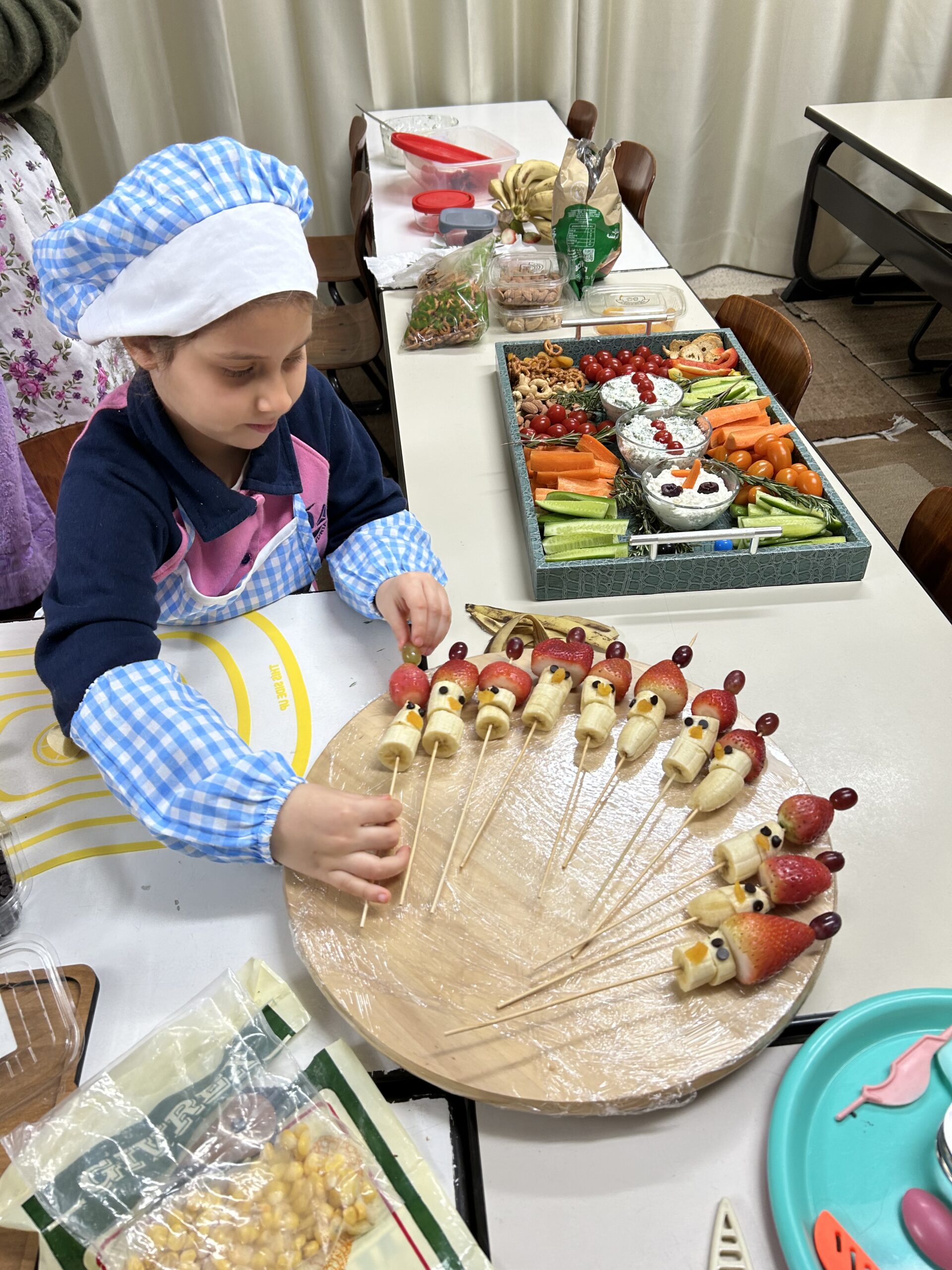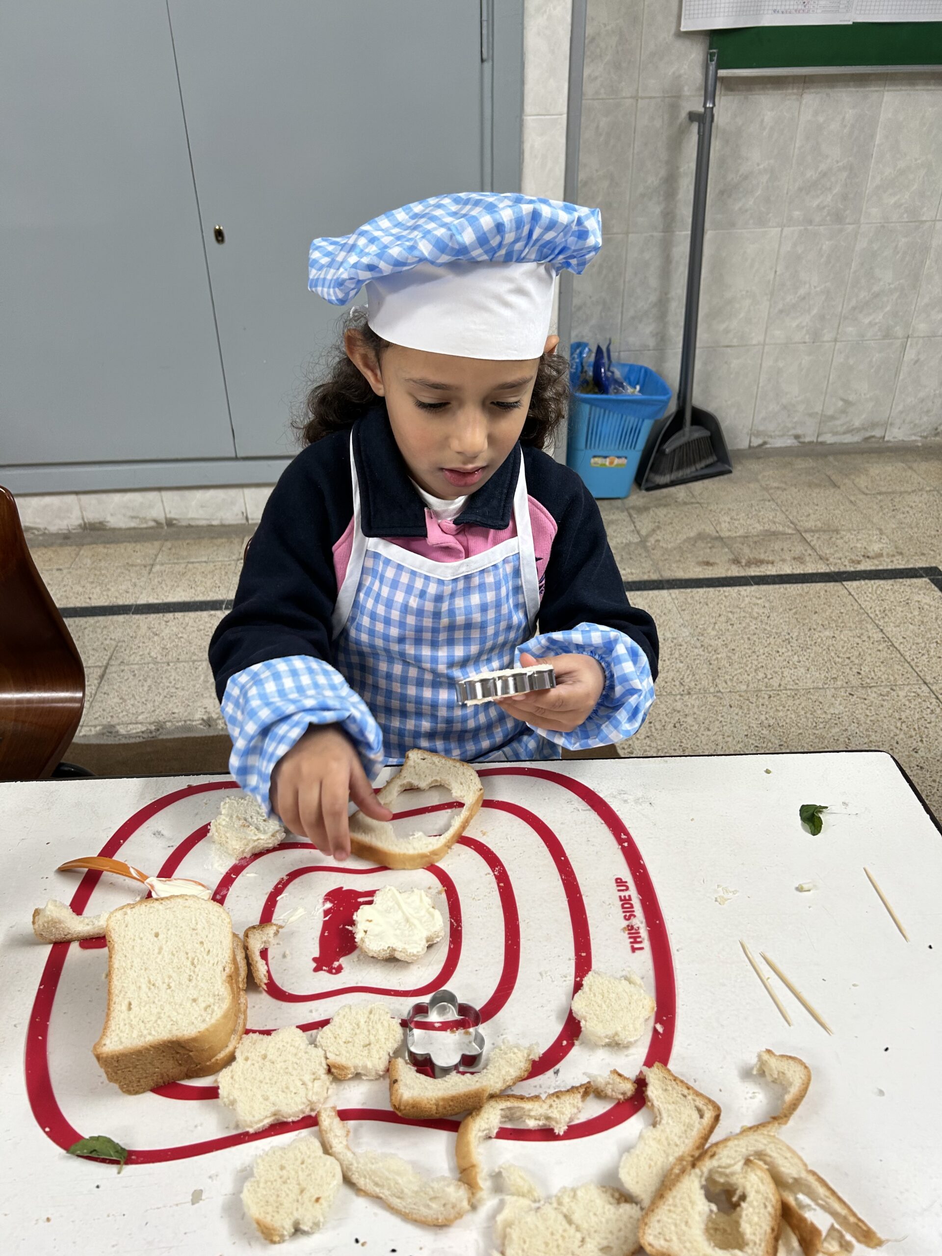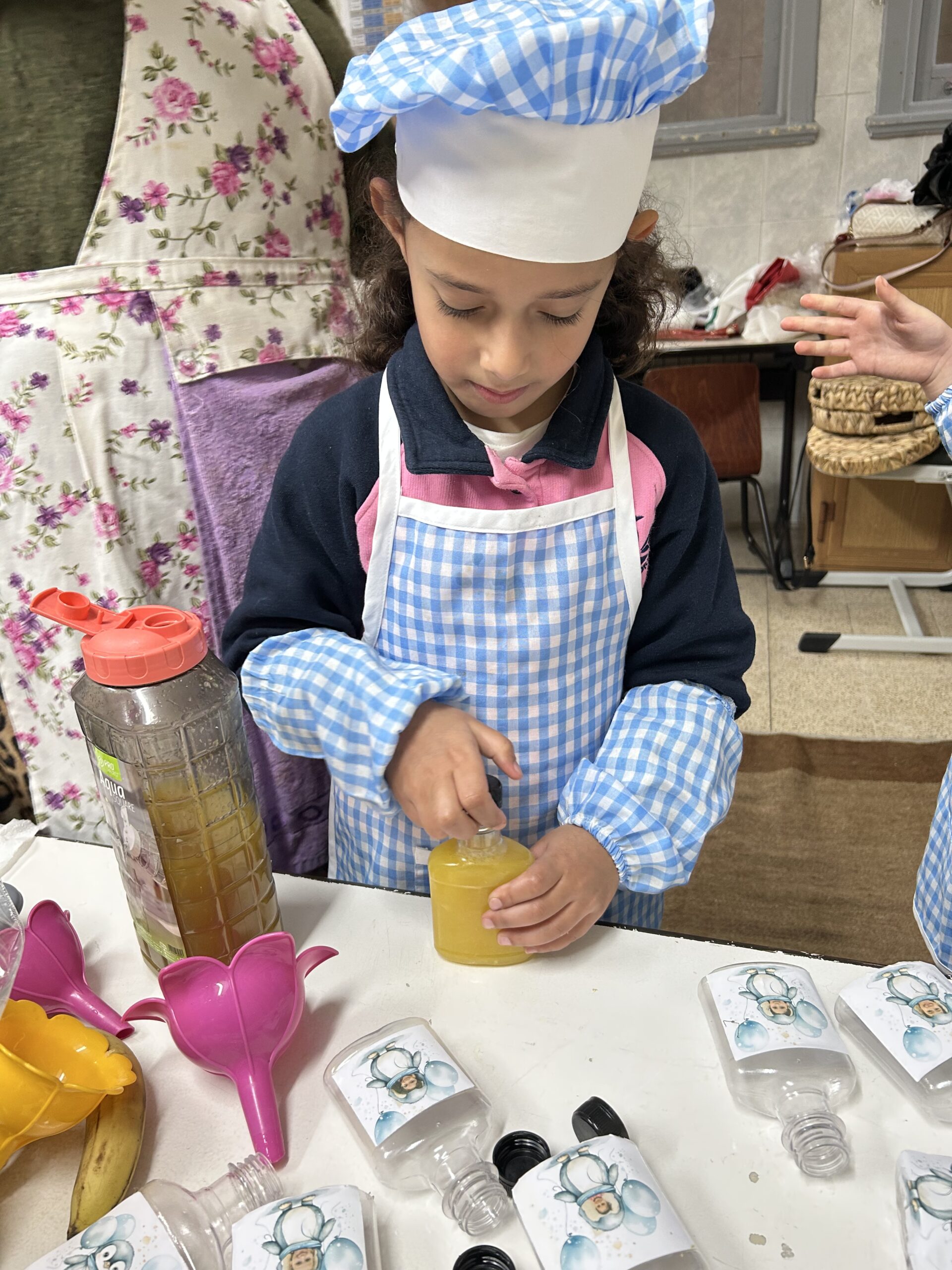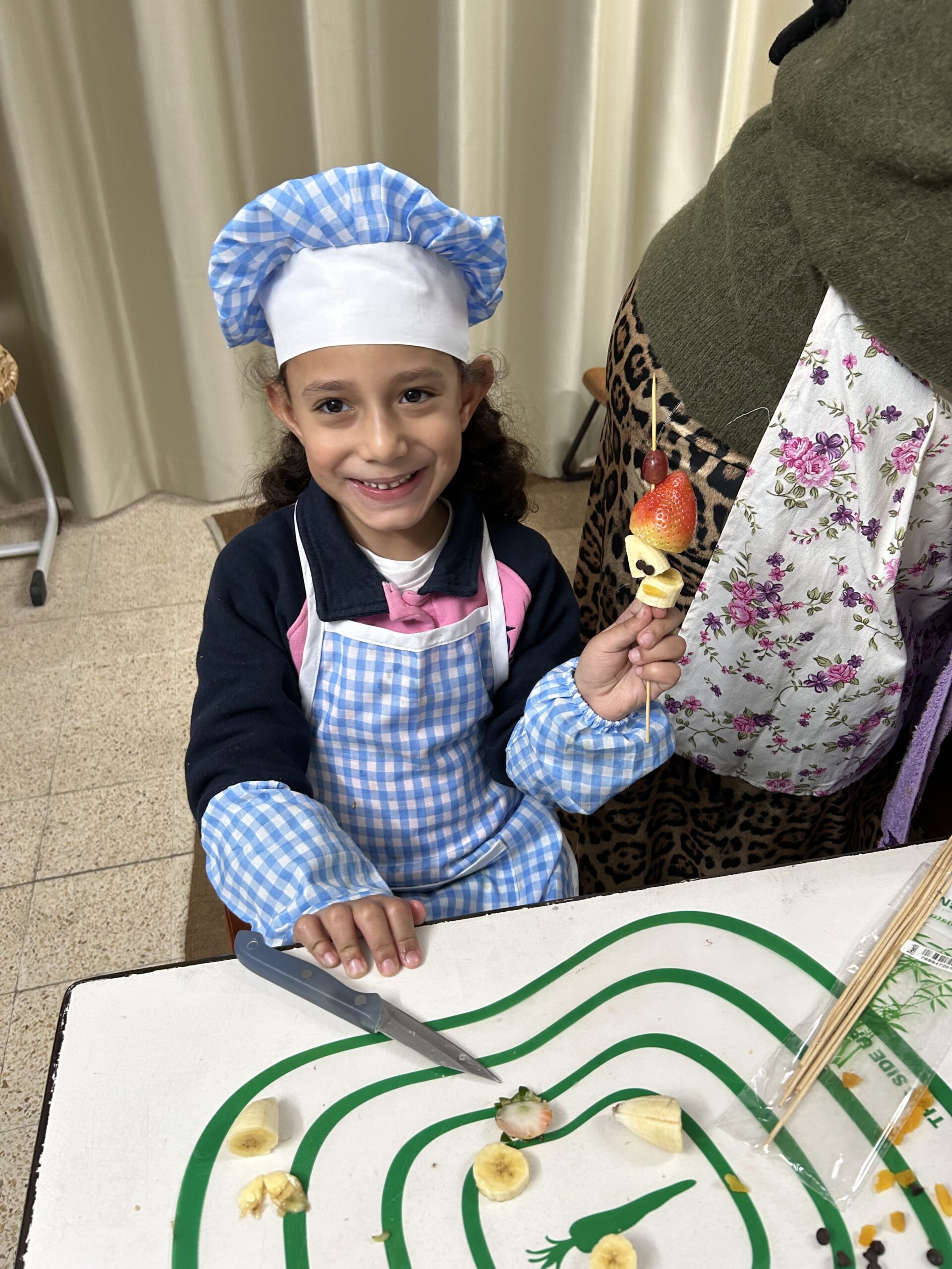 Unsere Vorschülerinnen Dania, Hania, Dalida und Tia kamen heute in den Genuss, mit den Müttern Fr. Yara, Fr. Yasmine und Fr. Kheloud das Essen zuzubereiten.