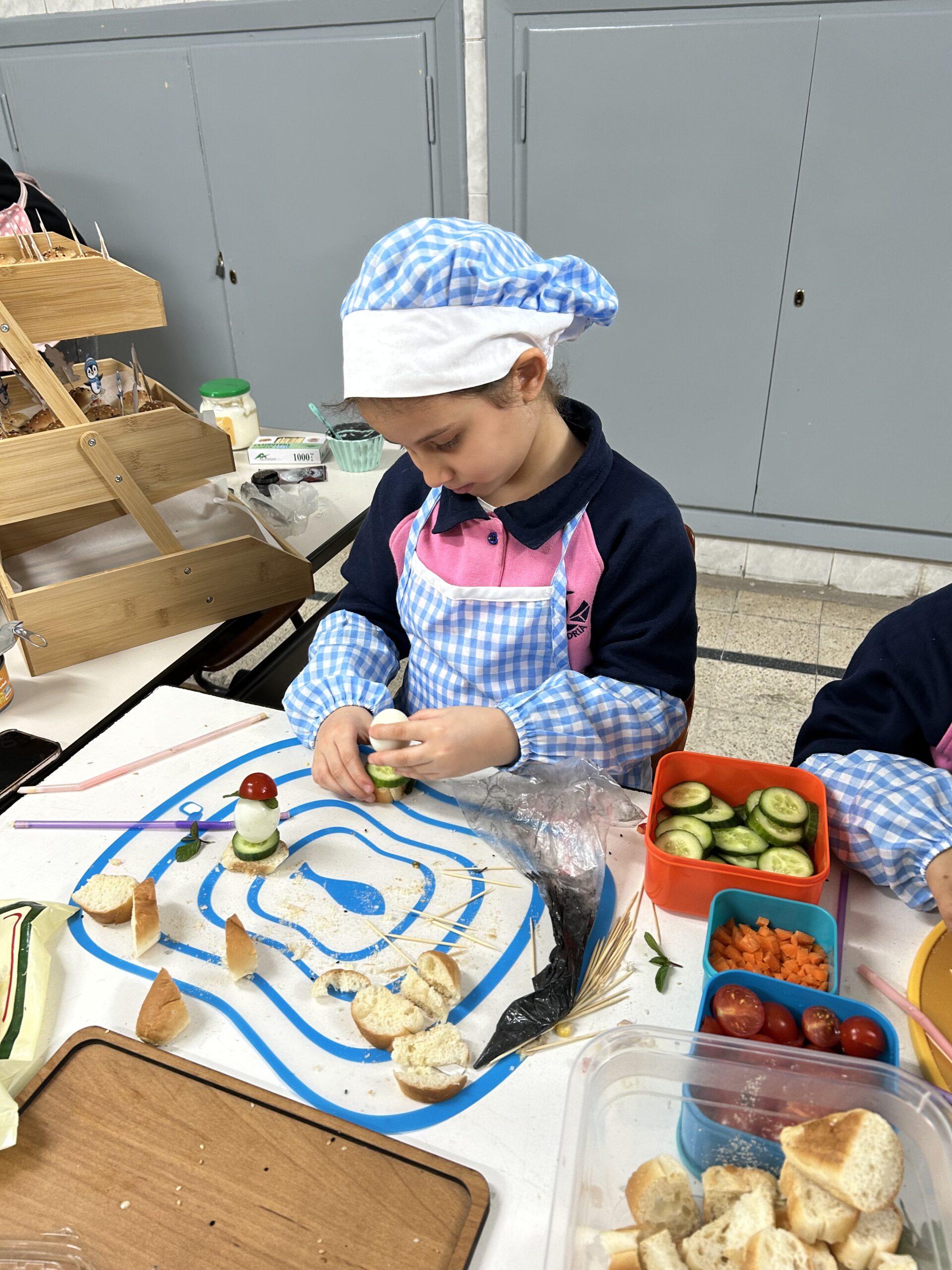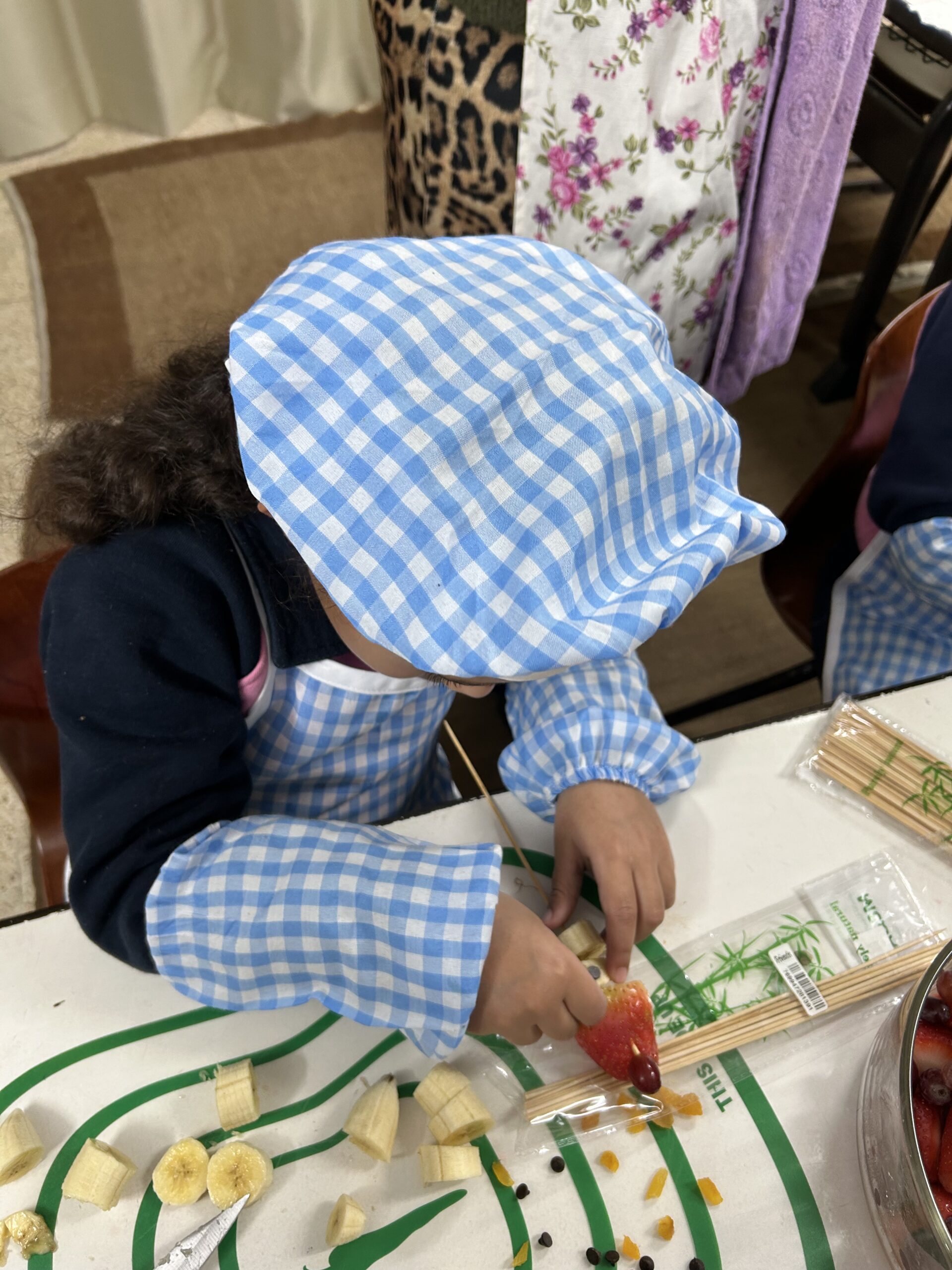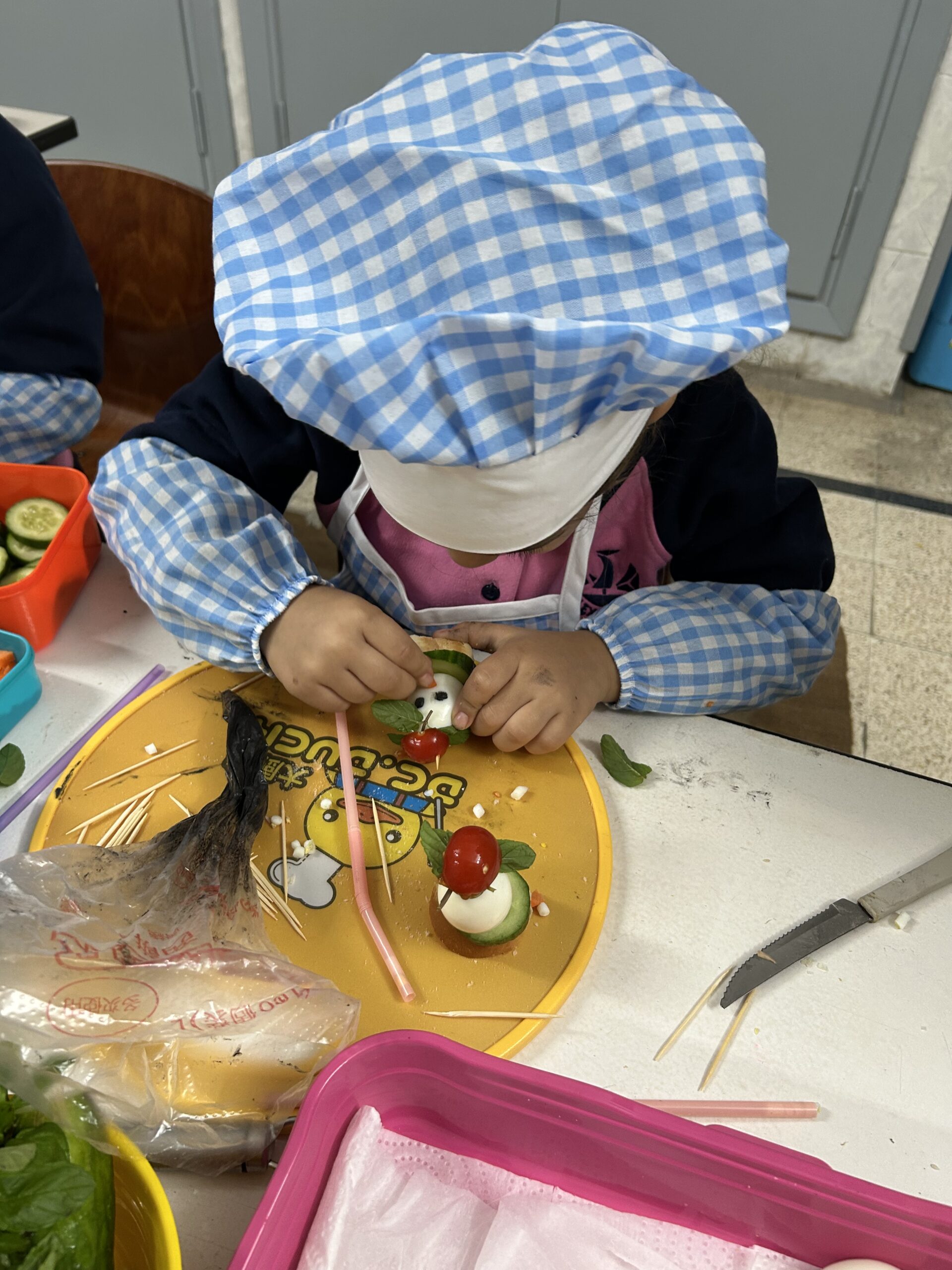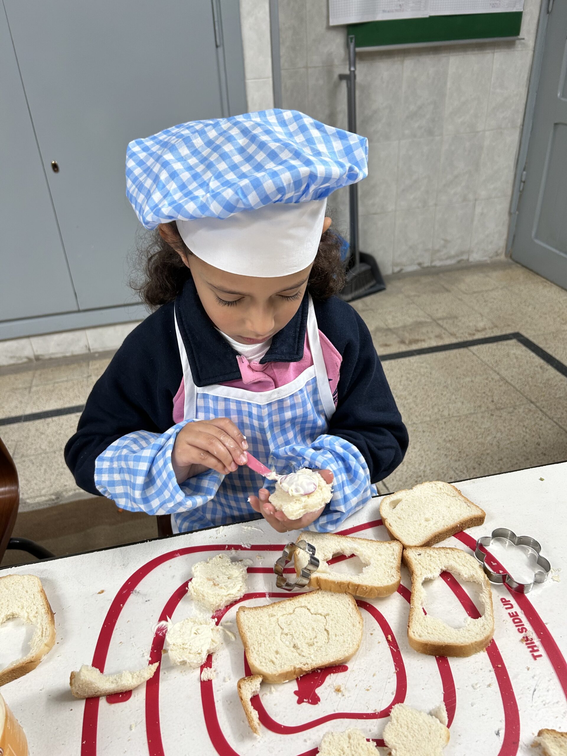 Unsere Vorschülerinnen Dania, Hania, Dalida und Tia kamen heute in den Genuss, mit den Müttern Fr. Yara, Fr. Yasmine und Fr. Kheloud das Essen zuzubereiten.