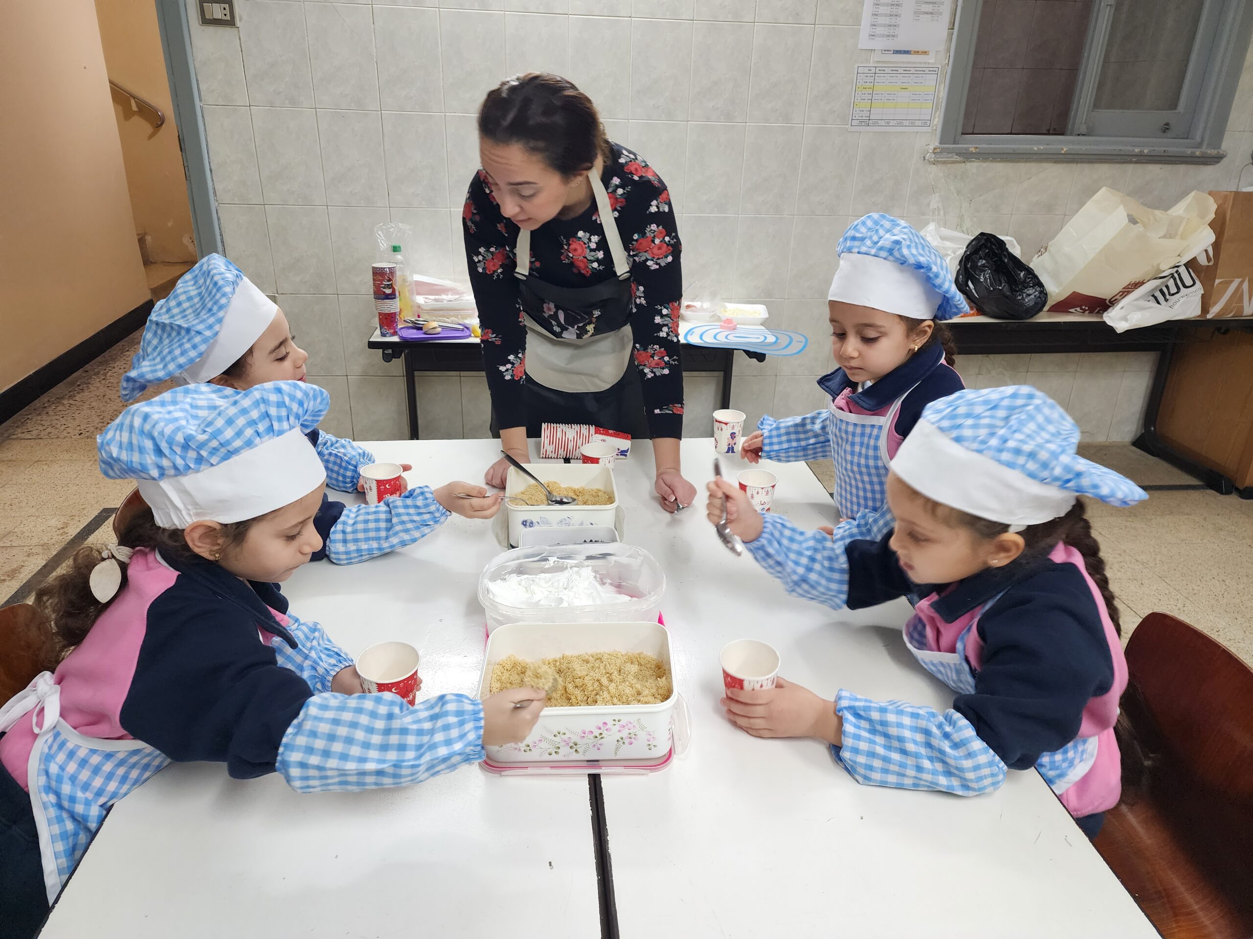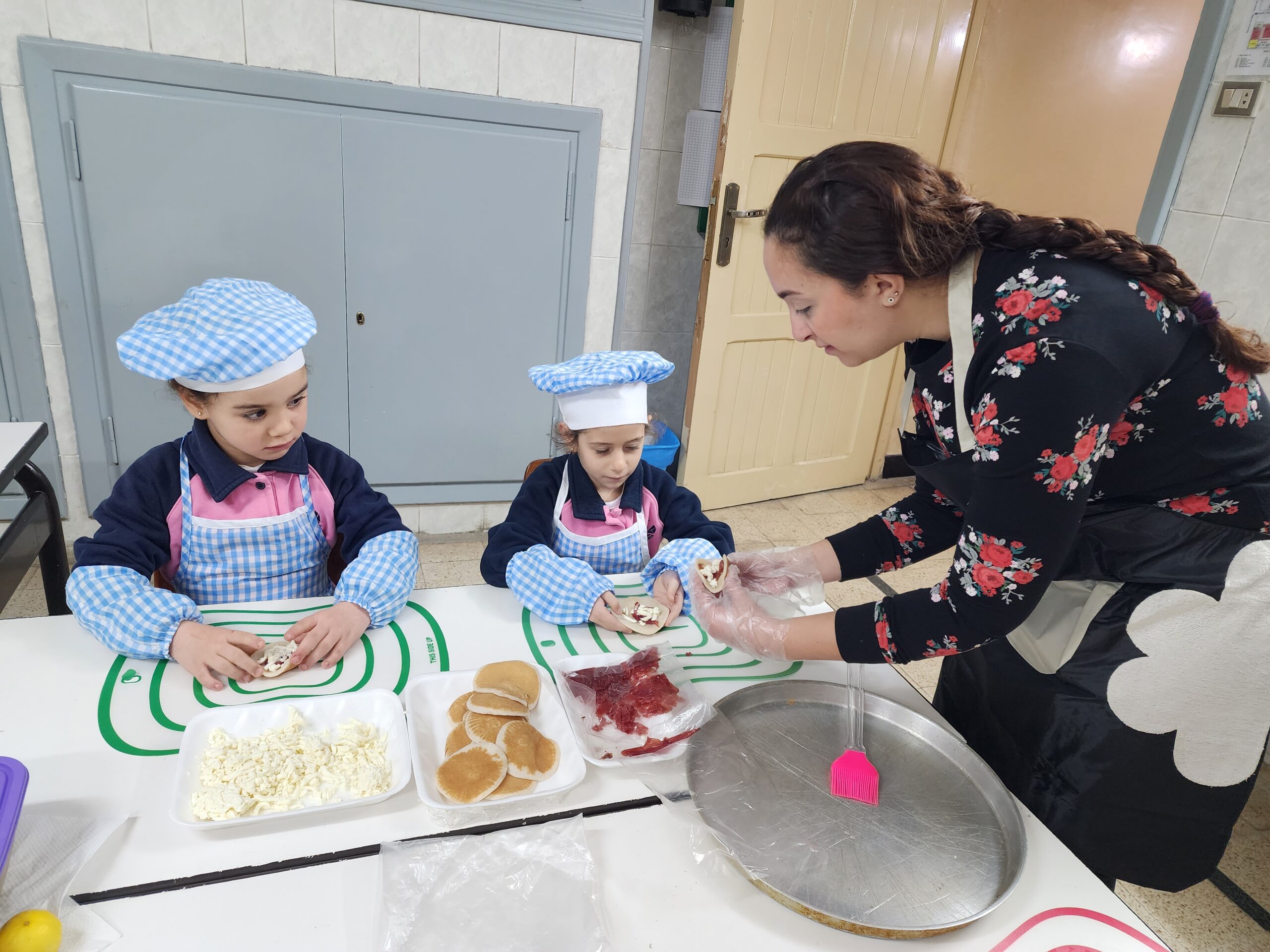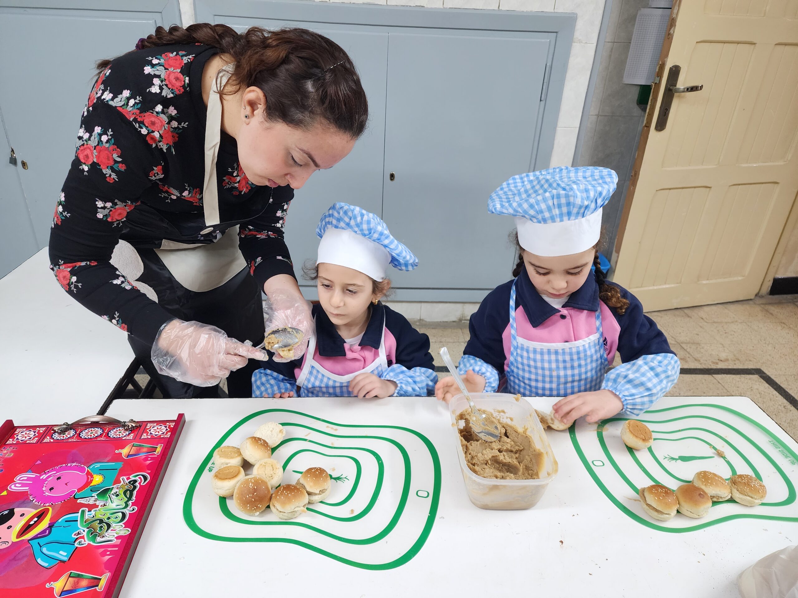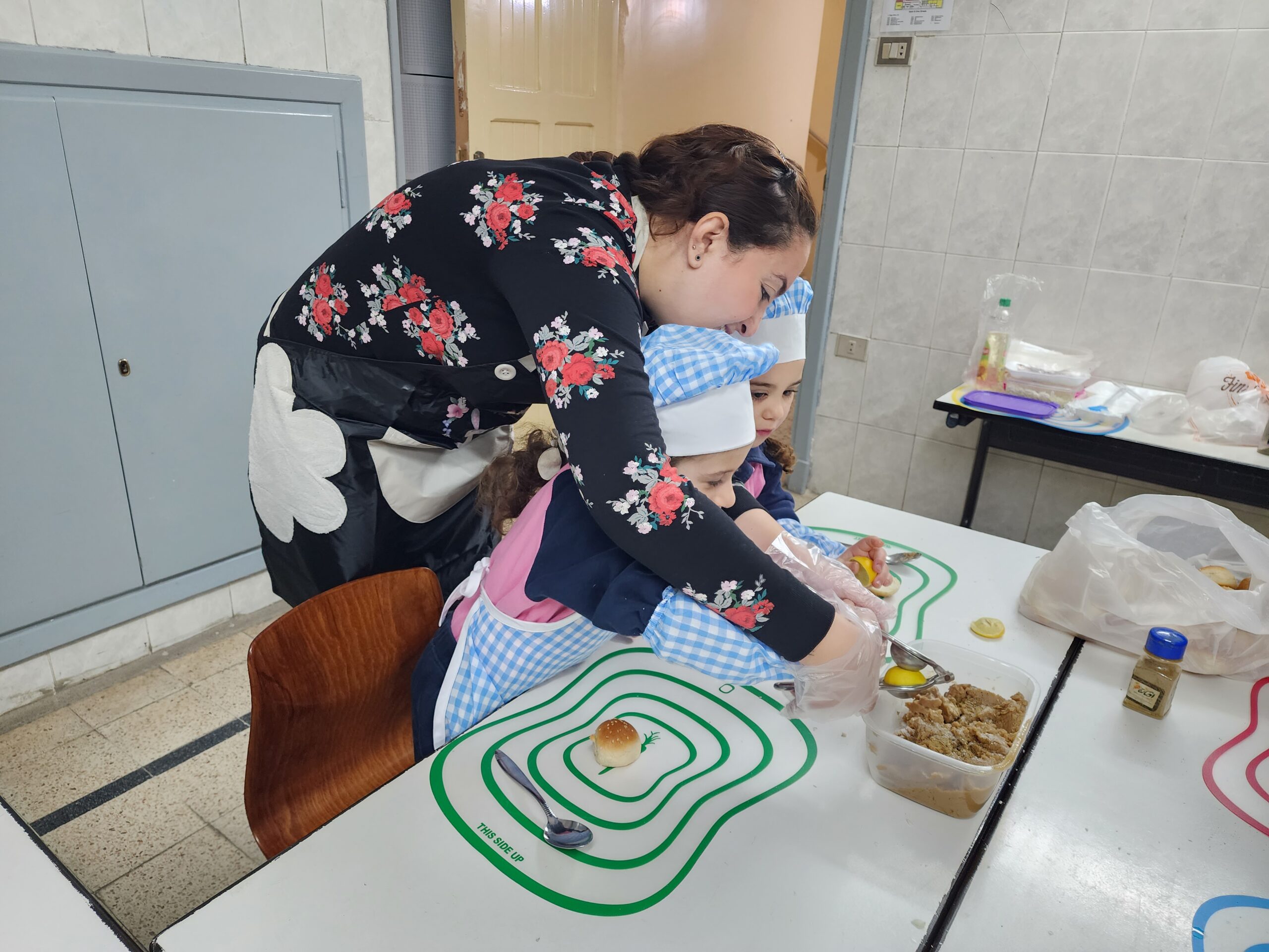 Zwei Mütter, Frau Laura und Frau Marina, bereiteten gemeinsam mit vier kleinen Köchinnen , Ayla, Carla, Layla Ahmed und Monica leckere Speisen zu.