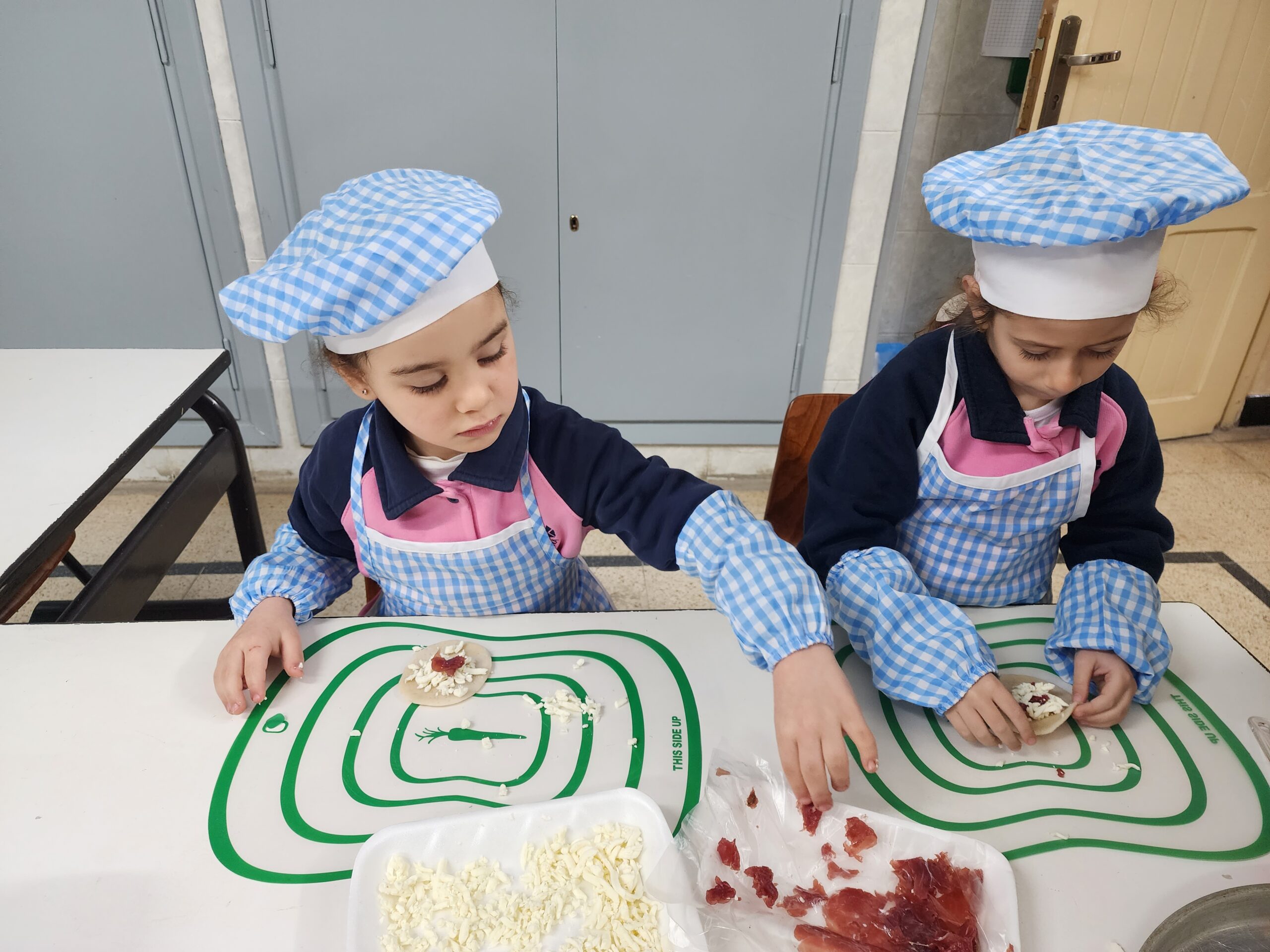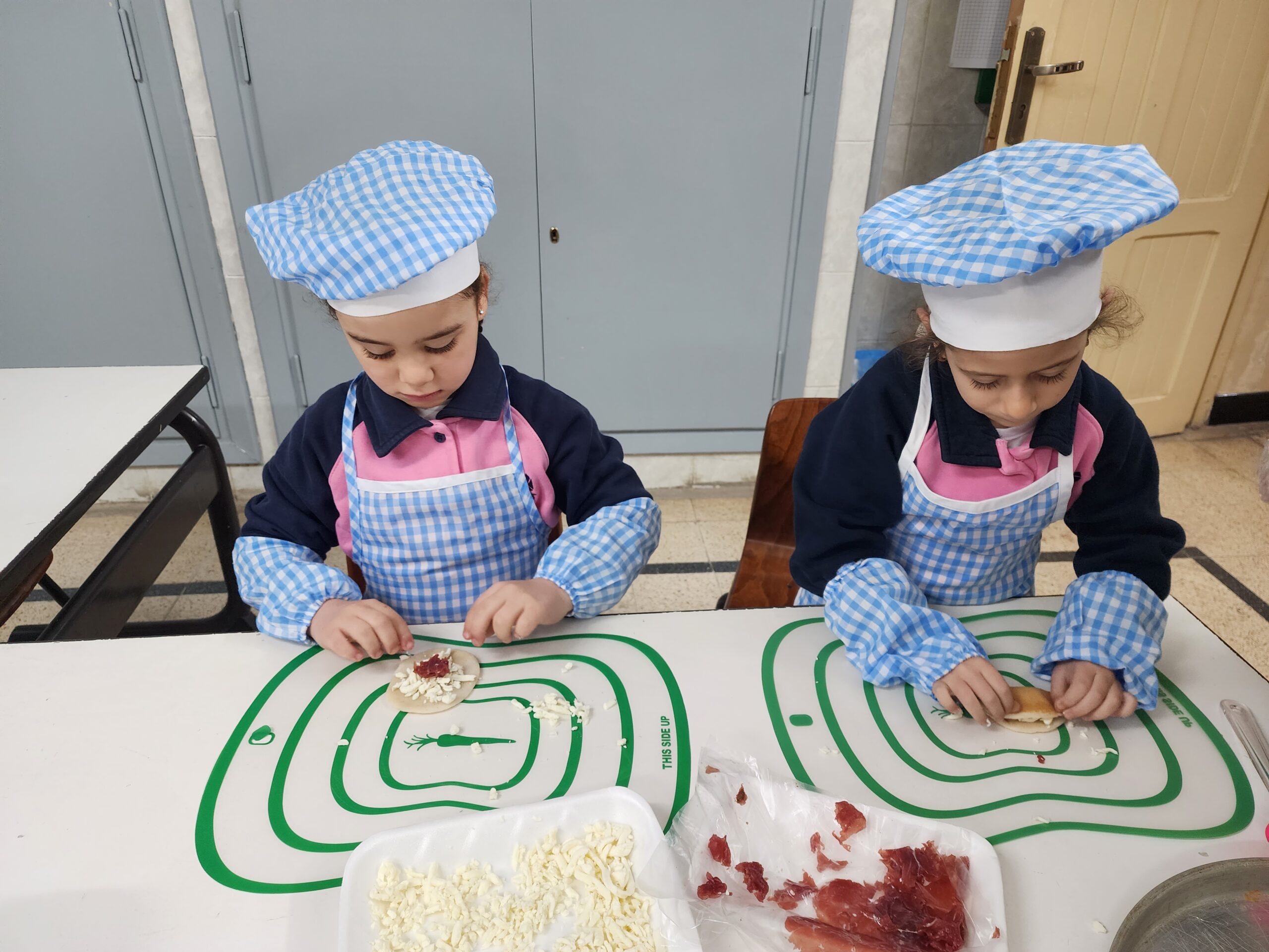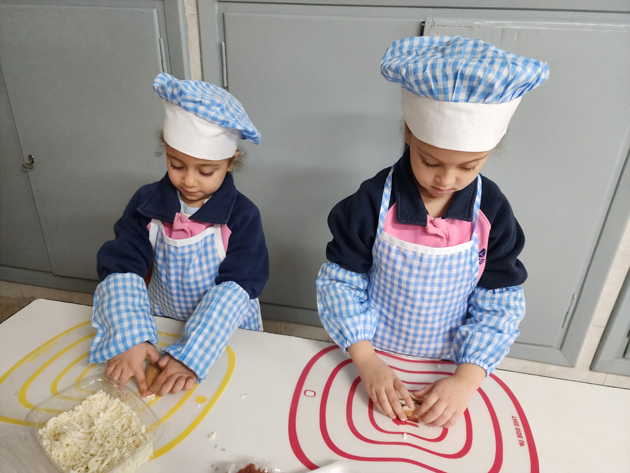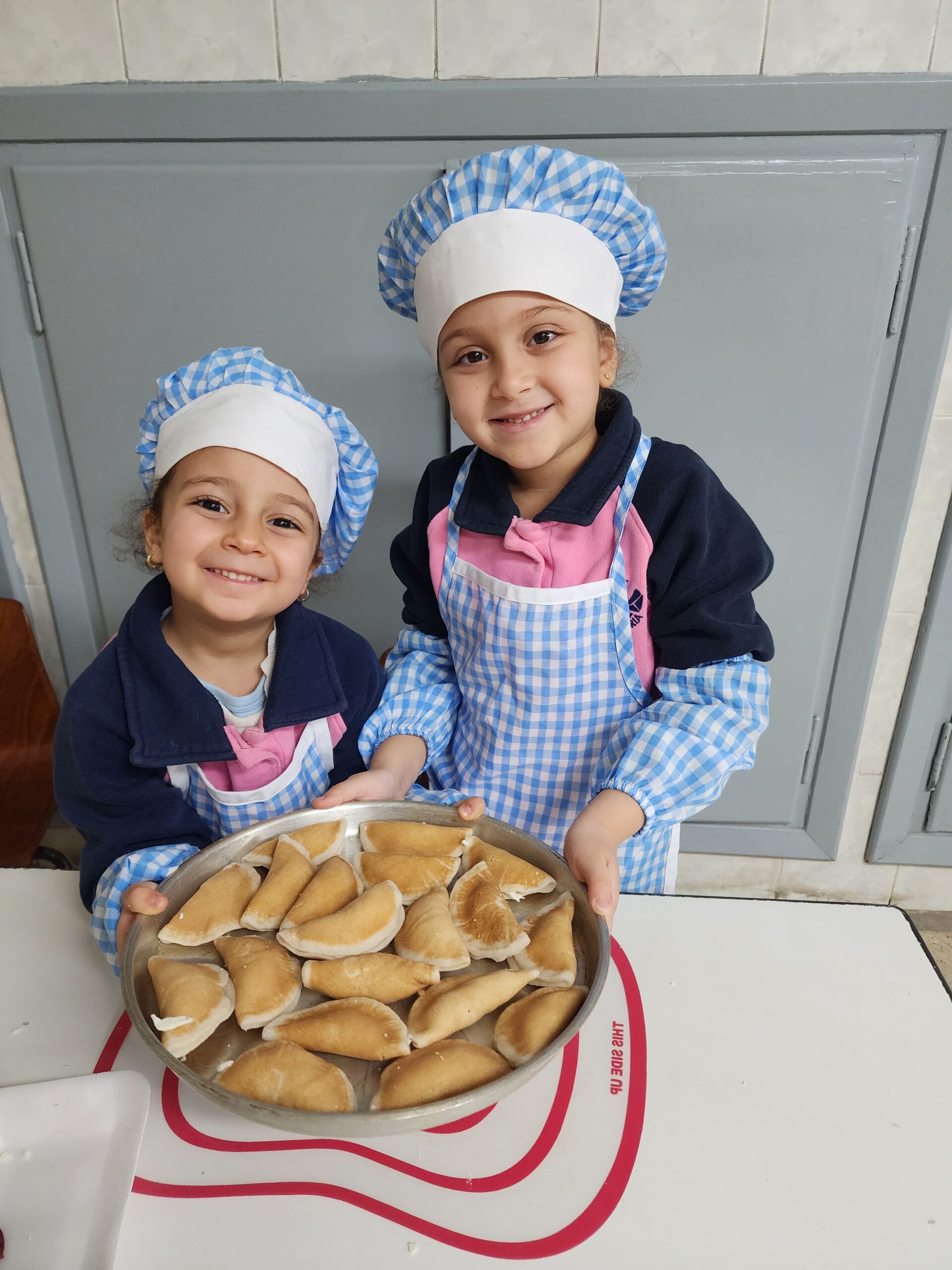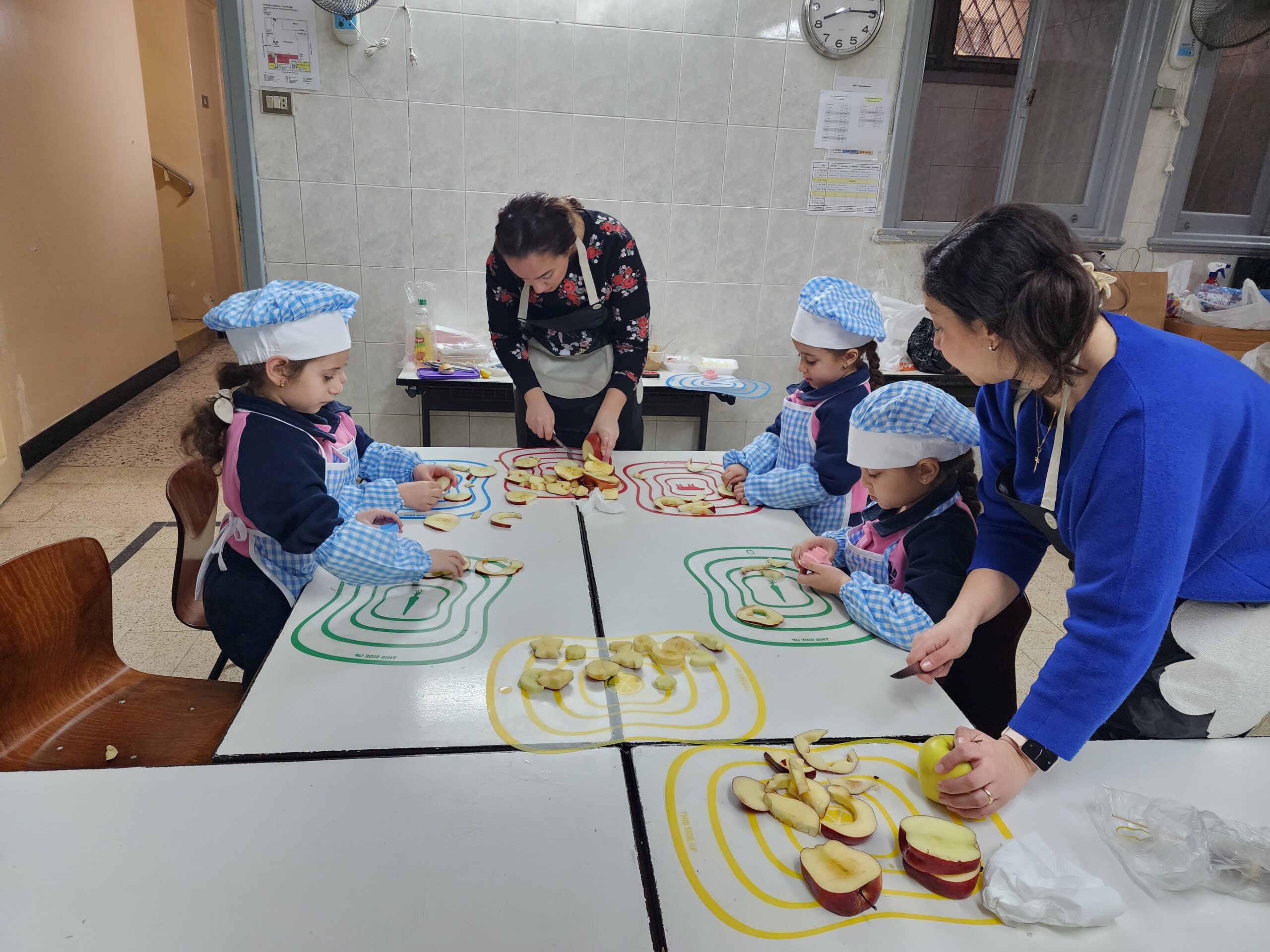 Zwei Mütter, Frau Laura und Frau Marina, bereiteten gemeinsam mit vier kleinen Köchinnen , Ayla, Carla, Layla Ahmed und Monica leckere Speisen zu.
